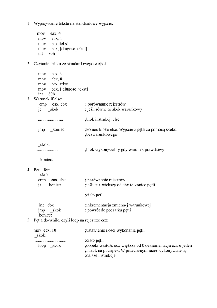 mov eax, 4 mov ebx, 1 mov ecx, tekst mov edx, [dlugosc_tekst]