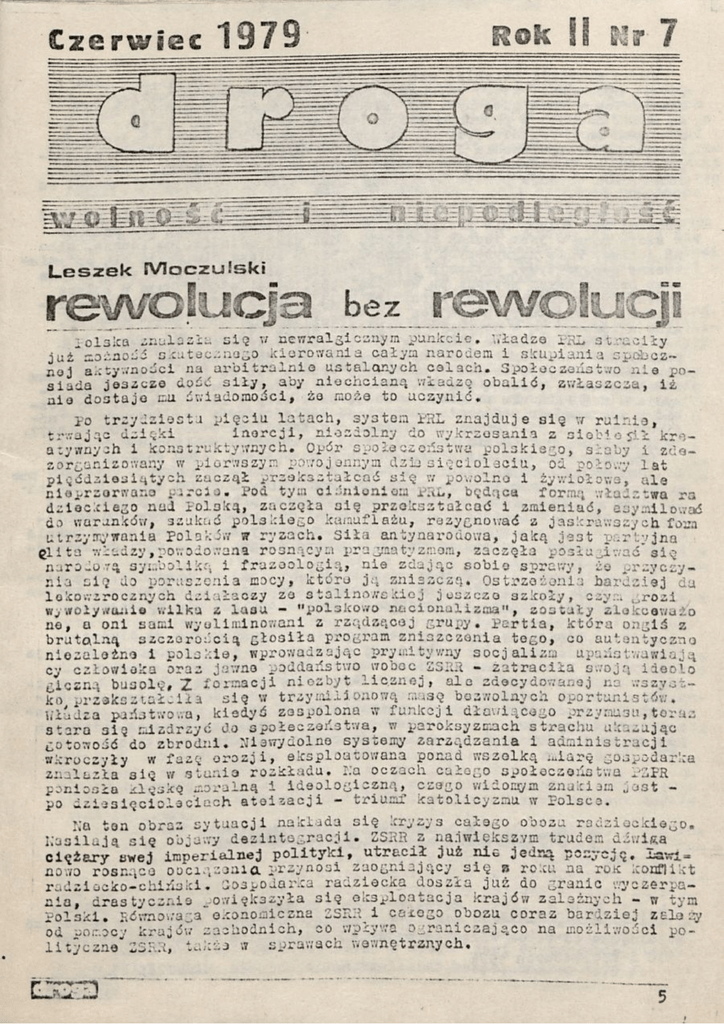 1 Rewolucja bez rewolucji po raz pierwszy została opublikowana w piśmie Droga nr 7 z 1979 r..