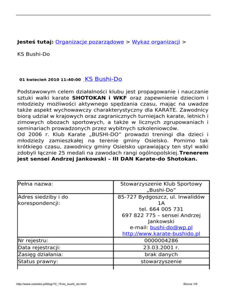 Organizacje pozarządowe > Wykaz organizacji > KS Bushi