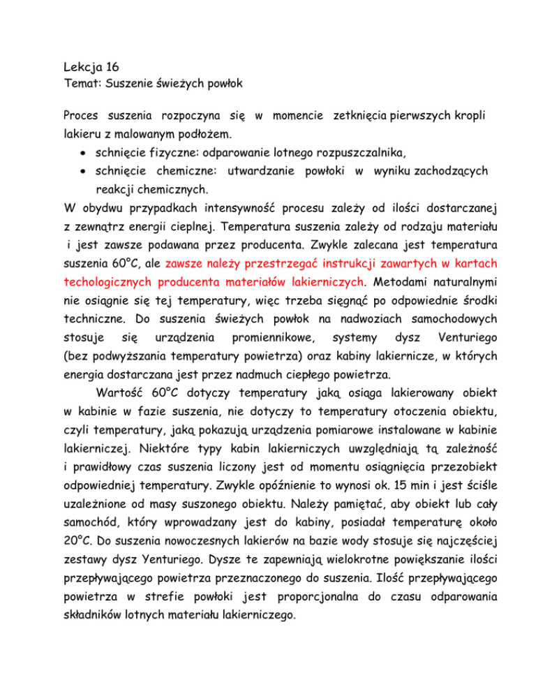 Lekcja 16 Temat: Suszenie świeżych powłok Proces