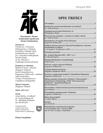 SPIS TREŚCI - Parafia pw Chrystusa Odkupiciela w Chełmie