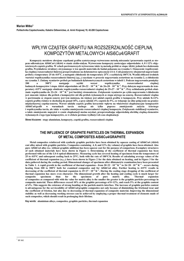 WPŁYW CZĄSTEK GRAFITU NA ROZSZERZALNOŚĆ CIEPLNĄ