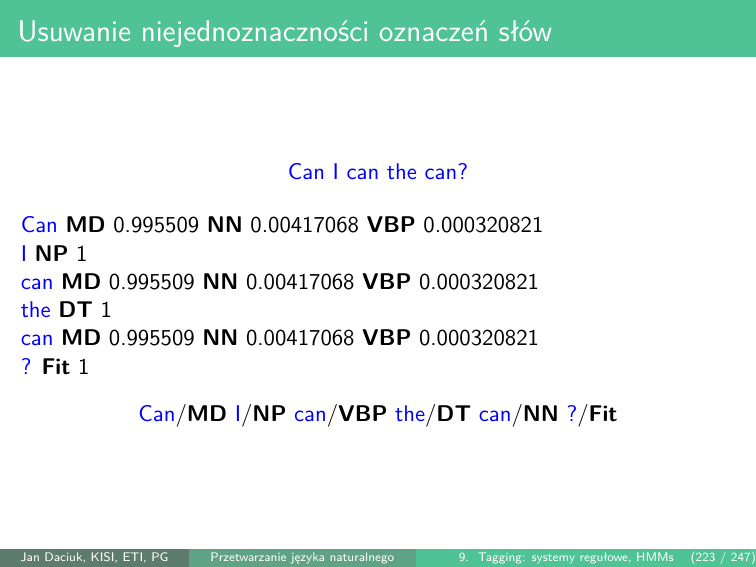 być tylko części mowy), w tej fazie następuje tylko ich ujednoznacznienie.