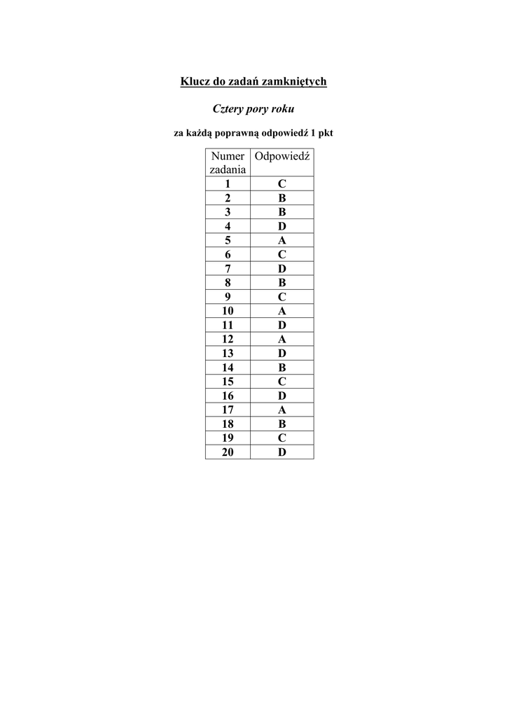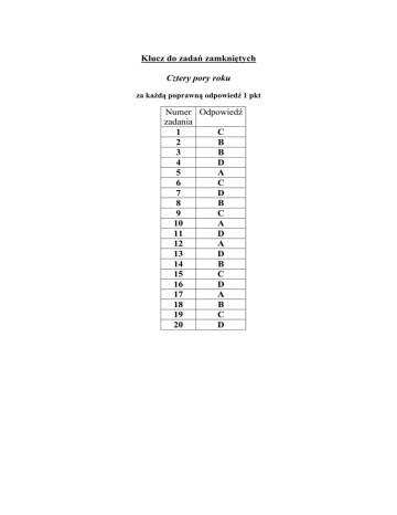 Klucz do zadań zamkniętych Cztery pory roku Numer zadania