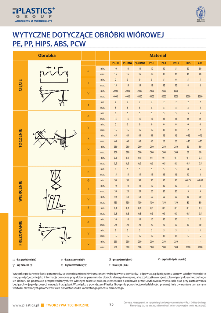 wytyczne dotyczące obróbki wiórowej pe, pp, hips