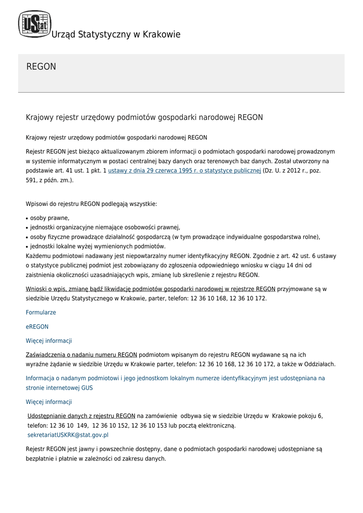 Urząd Statystyczny w Krakowie / Co, gdzie, jak załatwić? / REGON