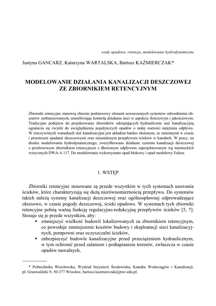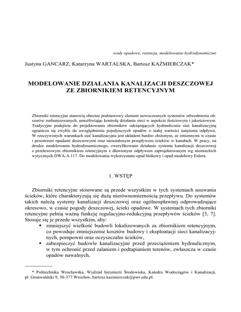 Modelowanie działania kanalizacji deszczowej ze zbiornikiem