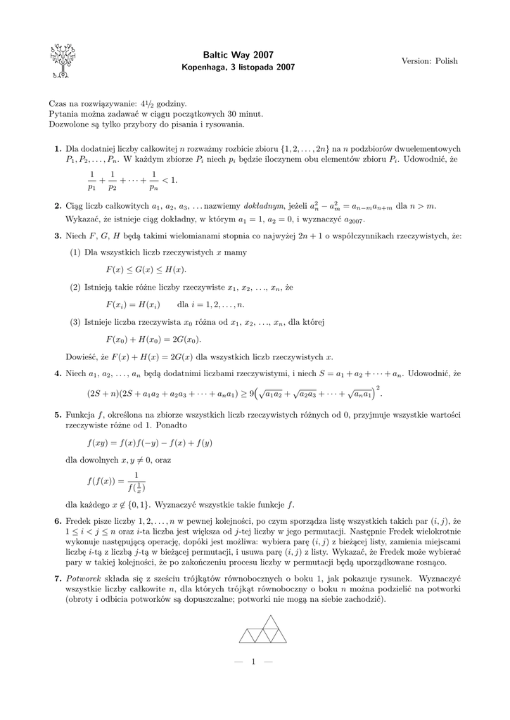 Czas na rozwia̧zywanie: 41/2 godziny.