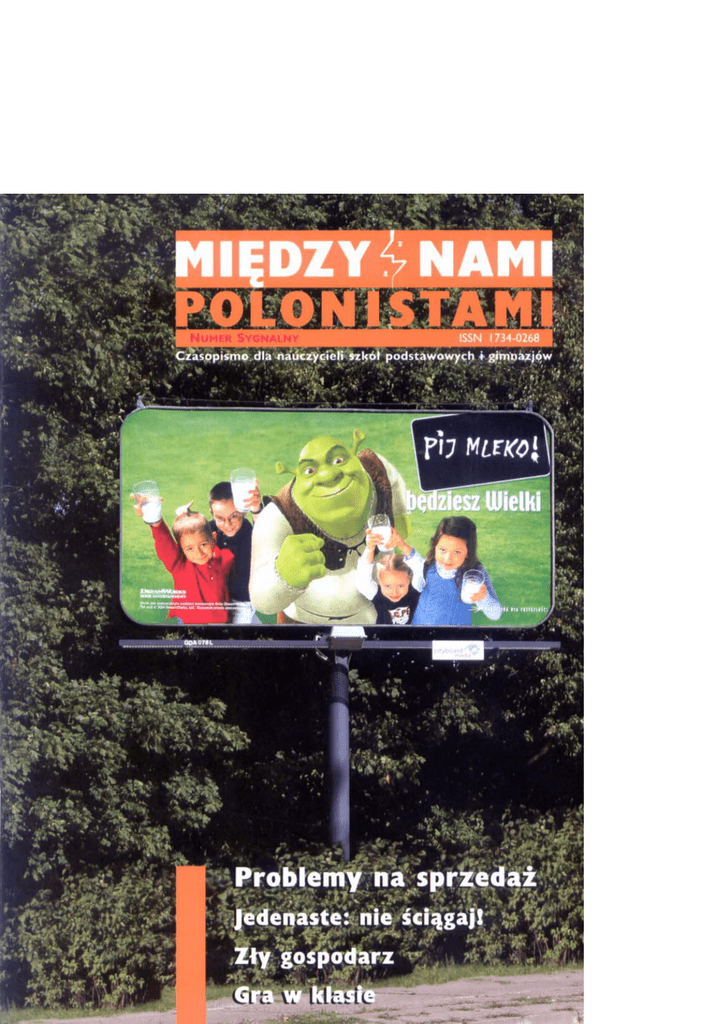Szanowni Państwo! Mamy przyjemność zaprosić Państwa do lektury sygnalnego numeru czasopisma „Między nami polonistami” – dwumiesięcznika dla polonistów uczących w szkołach podstawowych i gimnazjach. Wiemy jedno: nikt tak jak polonista nie wpływa na kształtowanie młodego człowieka. Na żadnych innych lekcjach nie rozmawia się tyle z uczniami o wartościach, o sensie życia, o tym, co naprawdę ważne. Nie uczymy jedynie języka polskiego, ale czegoś znacznie ważniejszego. Aby sprostać rosnącym wymaganiom stawianym przez uczniów, rodziców i system edukacji, musimy się ciągle kształcić, otwierać na nowe prądy, idee, myśli. I przekładać je na codzienną praktykę szkolną. Właśnie w tym chcemy Państwu pomóc – dać praktyczne rozwiązania, pokazać, jak jeszcze ciekawiej można zrealizować lekcje, czym zająć uczniów, jak w zupełnie nowy sposób podejść do danego tematu. W numerze sygnalnym, oprócz scenariuszy i pomysłów na lekcje, znajdą Państwo opinie o projekcie nowej podstawy programowej, porady wychowawcze i językowe, recenzje wartych przeczytania książek, a na deser – trochę żartobliwych tekstów i rysunków. Nie zapomnieliśmy oczywiście o konkursie z nagrodami. Zapraszamy Państwa do współpracy! Zachęcamy do nadsyłania pomysłów na lekcje, scenariuszy zajęć, interesujących propozycji, a także informacji o tym, czego najbardziej brakuje Państwu w codziennej pracy. Czekamy na propozycje tematów lekcji, do których warto napisać ciekawy scenariusz. Zachęcamy gorąco do zaprenumerowania dwumiesięcznika. Szczegółowe warunki prenumeraty znajdą Państwo na następnej stronie. Jesteśmy bardzo ciekawi Państwa opinii na temat naszego czasopisma. Zapraszamy do wypełnienia krótkiej ankiety zamieszczonej na stronie internetowej: www.gwo.pl/gazetamnp Życzymy przyjemnej lektury! Redakcja SPIS TREŚCI „Między nami polonistami” Czasopismo dla nauczycieli szkół podstawowych i gimnazjów Adres redakcji: al. Grunwaldzka 413 80-309 Gdańsk tel. (58) 340 63 07 fax (58) 340 63 21 Opinie Paweł Mazur: Jedenaste: nie ściągaj! . . . . . . . . . . . . . . . . . . . . . . . . . . . . . . . 5 Praca u podstaw (programowych) . . . . . . . . . . . . . . . . . . . . . . . . . . . . . . . . . 8 Marcin Kowalski: Gra w klasie . . . . . . . . . . . . . . . . . . . . . . . . . . . . . . . . . . . . 11 Dział sprzedaży: tel. (58) 340 63 60 Adres do korespondencji: Dyskretnie wciągam do gry. Rozmowa z Karolem Maliszewskim, nauczycielem, poetą i krytykiem literackim . . . . . . . . . . . . . . . . . . . . . 15 Anna Herzog: Reklama daje do myślenia . . . . . . . . . . . . . . . . . . . . . . . . . . . 17 „Między nami polonistami” skr. poczt. 59 80-876 Gdańsk 52 e-mail: [email protected] Redaktor naczelny: Paweł Mazur Scenariusze Joanna Piasta-Siechowicz: Zrozumieć rzeczywistość (wirtualną) . . . . . . . . 19 Tatiana Witkowska: Czy reklama kłamie? . . . . . . . . . . . . . . . . . . . . . . . . . . . 22 Marta Gos: Problemy na sprzedaż . . . . . . . . . . . . . . . . . . . . . . . . . . . . . . . . . 25 Załączniki do scenariuszy . . . . . . . . . . . . . . . . . . . . . . . . . . . . . . . . . . . . . . . . . 27 Wydawca: Gdańskie Wydawnictwo Oświatowe sp. z o.o. al. Grunwaldzka 413 80-309 Gdańsk KRS 0000125773 przy Sądzie Rejonowym w Gdańsku Redaguje kolegium: Jacek Foromański Anna Herzog Paweł Mazur Aleksandra Stawiszyńska Tatiana Witkowska Nauczyciel ma pomysły Ewa Rudnik, Lidia Kozuba: Nie dawaj miary plotkom . . . . . . . . . . . . . . . . 32 Anna Adamiec: Piszemy do Harry’ego Pottera . . . . . . . . . . . . . . . . . . . . . . . 33 Marzena Kitowicz: Uczeń (się) streszcza . . . . . . . . . . . . . . . . . . . . . . . . . . . 35 Danuta Styrek: Antygona zwołuje konferencję . . . . . . . . . . . . . . . . . . . . . . . 35 Katarzyna Kłos: Słowa szybkie i wolne . . . . . . . . . . . . . . . . . . . . . . . . . . . . . 35 Janusz Pomykała: Posejdon z drugiej ławki . . . . . . . . . . . . . . . . . . . . . . . . . 35 Lucyna Panek: Patrz i ucz się! . . . . . . . . . . . . . . . . . . . . . . . . . . . . . . . . . . . . 36 Anna Flisikowska: Ćwiczenia do pracy nad opisem . . . . . . . . . . . . . . . . . . 36 Projekt graficzny: Iwona Kuzioła-Duczmal Projekt okładki: Sławomir Kilian Ilustracje: Godzina wychowawcza Małgorzata Firsiof: Nauczmy dzieci wartości . . . . . . . . . . . . . . . . . . . . . . . . 37 Maria Mazur: Zły gospodarz . . . . . . . . . . . . . . . . . . . . . . . . . . . . . . . . . . . . . 40 Zuzanna Marczak: Poznajmy się! . . . . . . . . . . . . . . . . . . . . . . . . . . . . . . . . . 41 Sławomir Kilian Poradnia językowa Zdjęcia: Leszek Jakubowski Skład systemem TEX: Lech Chańko Druk i oprawa: Interak, Czarnków Helena Kajetanowicz: Dlaczego Penelopa pruła teścia? . . . . . . . . . . . . . . . 42 Edward Łuczyński: Pisownia liczebników porządkowych . . . . . . . . . . . . . . 44 Czytelnia . . . . . . . . . . . . . . . . . . . . . . . . . . . . . . . . . . . . . . . . . . . . . . . . . . . 45 Dzwonek na przerwę . . . . . . . . . . . . . . . . . . . . . . . . . . . . . . . . . . . . . . . . 46 Przewodnik po działach Scenariusze Gotowe scenariusze lekcji przydadzą się każdemu nauczycielowi. Szczególnie takich scenariuszy, które zostały już zrealizowane i sprawdziły się w praktyce szkolnej. Na pewno mają Państwo wiele gotowych pomysłów na ciekawe i niebanalne lekcje. Proszę się Opinie nimi pochwalić – najciekawsze wydrukujemy! Piszemy o tym, co aktualne, co ważne, co jest przedmiotem sporów i dyskusji, ale także poruszamy problemy, które wydają się nam Czytelnia ciekawe i warte tego, by zwróMimo wielu lat ślęczenia nad książkami nie cić na nie uwagę. Chcieliby Pańzniechęciliśmy się jeszcze do czytania. Poloniści już stwo coś skomentować? Z czymś tacy są. W tym dziale raczej nie będziemy polecać się zgodzić lub nie zgodzić? Napi