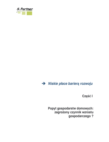 Niskie płace barier rozwoju Cz I Popyt gospodarstw domowych: zagro ony czynnik wzrostu gospodarczego ? Cze I - Popyt gospodarstw domowych: zagro ony czynnik wzrostu gospodarczego ? 1. Podstawowe definicje – wprowadzenie !" # & ( " " $ % ' & & ) * # % % # & " !* ! * "( * ! "( ł $ % & * ł # + ," % + & ", * ! "( * ! % #$ $ - " % # & ! " & % " $ .//0 # & # " 1" & # " 2 # # 1 # # 2 & " Niskie płace barier rozwoju Cze I - Popyt gospodarstw domowych: zagro ony czynnik wzrostu gospodarczego ? 2. Rola konsumpcji gospodarstw domowych we wzro cie gospodarczym w Polsce. 2.1. Ograniczona rola handlu zewn trznego we wzro cie gospodarczym w Polsce % +6-7, " $ .//3 " 8 1 3; <5 6-7," $ + = # ," : &# + & & #)4 .5 +495 ./// .//3 ! .//0 ;," > # % @8A?, " ? A # ( 4. <5 $ # 00 B5 ! 8 & ./// .//3 # # .//0 " .< )5, 49 35 +.//3 <B.5" ? & + Tabela 1: Relacja eksportu do PKB w okresie 2000-2005 (towary i usługi wg NBP) 2000 2001 2002 2003 2004 2005 9 mies. 2006 PKB w mld PLN 684,9 721,6 781,1 814,7 923,3 980,7 751,2 Eksport w mld PLN 201,5 211,0 231,0 280,8 346,4 362,6 311,1 Eksport/ PKB w % 29,4 29,2 29,6 34,5 37,5 37,0 41,4 ródło: Ministerstwo Gospodarki, Departament Analiz I Prognoz # .<5 .//) # ); B5 .//0 .//3 " += % .//B .," # Tabela 2: Skala wpływu poszczególnych kategorii na wzrost realny PKB (w procentach) PKB niewyrównany sezonowo; ceny stałe rednioroczne roku poprzedniego Popyt krajowy Spo ycie ogółem 2003 2004 2005 I - IV kw. I - IV kw. I - IV kw. I kw. II kw. 2006 III kw. 2,7 2,1 6,1 3,3 2,4 2,1 4,7 4,3 4,9 3,5 6,1 1,2 2,8 1,2 3,4 3,1 3,5 0,6 2,8 0,3 0,4 1,4 2,4 -0,02 1,2 1,2 0,9 2,3 3,4 1,1 -0,8 1,1 0,5 0,6 3,8 5,3 3,5 5,2 5,5 -0,3 5,8 3,7 w tym: Spo ycie indywidualne Akumulacja brutto w tym: Nakłady brutto na rodki trwałe Saldo obrotów z zagranic Produkt krajowy brutto ródło: Departament Rachunków Narodowych i Finansów GUS Niskie płace barier rozwoju 3 Cze I - Popyt gospodarstw domowych: zagro ony czynnik wzrostu gospodarczego ? 2.2. Udział popytu krajowego we wzro cie gospodarczym - # ! .//3 @8A?" % Wykres 1 : Relacja popytu krajowego do PKB (ceny bie # <;5 # ce) 100 90 87 87 86 80 84 83 81 81 81 80 79 78 78 78 78 76 76 76 75 75 75 75 74 74 74 73 72 72 67 70 62 60 60 57 50 40 30 20 10 H is zp an ia Ja po ni Sz a w ec ja A us tra lia K an ad a D an ia A us t Fi ria nl an di a H ol an di a C ze Sz ch y w aj ca ria K o N rea or w eg ia Ir Lu land ia ks em bu rg Eu ro N ie m cy B el gi a St re fa Ze la nd ia N ow a U SA Is la nd ia G re cj a Po ls ka Fr an cj a Tu rc j M a ek sy k P W or tu ie ga lk l a B ia ry ta ni a 0 ródło: OECD, opracowanie S. Partner. ! " @' % % & & " %& & " Wykres 2: Czynniki decyduj ce o podj ciu działalno ci gospodarczej w Polsce przez inwestorów zagranicznych ródło: PAIZ, 2006, Opinie inwestorów zagranicznych o warunkach działalno ci w Polsce 4 Niskie płace barier rozwoju Cze 2.3. I - Popyt gospodarstw domowych: zagro ony czynnik wzrostu gospodarczego ? Wzrost gospodarczy wynika ze spo ycia gospodarstw domowych ! # + % ./// .//3 # 3) B5 # "$ ;993 .//3 , # 3/45 +6-7, #;395 +6-7," C % ;993 .//3 ;/95 ./// .//3" " ł .//30<5" $ .//B # # ! ł # ! +;;35, += % .//) 4;5 .//0 # .," $ ' " Tabela 3 : Dynamika realna produktu krajowego brutto w latach 2000- 2006 (ceny rednioroczne roku poprzedniego). 2000 2001 2002 2003 rok poprzedni = 100 2004 2005 2006 Spo ycie ogółem w tym: Spo ycie - indywidualne 102,8 102,2 102,9 102,5 104,0 102,6 104,4 103,0 102,2 103,3 101,9 104,3 101,8 105,2 Akumulacja brutto w tym: Nakłady brutto na rodki trwałe 103,9 86,6 92,8 103,3 114,7 101,4 111,5 102,7 90,3 93,7 99,9 106,4 106,5 116,7 Popyt krajowy 103,1 98,6 100,9 102,7 106,0 102,4 105,8 Produkt krajowy brutto 104,2 101,1 101,4 103,8 105,3 103,5 105,8 Wyszczególnienie ródło: Departament Rachunków Narodowych i Finansów 2 2 # # % # +2!7=, & % % - #2!7= #935 $ .//3 .//3 # ;9 .5 # ! +;4 ;5 @8A?, $ 2!7= ! & 8 $ A .) .5 8 +;0 <5, ! 8 7 2!7= ;< .5 +6-7," $ " $ .//3 2 +;45, # & 1 & " $ > # % " C & # .9 ;5" $ # # 2!7= ! %" +6-7," "> ' " .0 B5 $ 1 .//0 #./;5 +6-7," % & # % % & Niskie płace barier rozwoju & #% % # " $ 8 % "C & 5 Cze I - Popyt gospodarstw domowych: zagro ony czynnik wzrostu gospodarczego ? # # " 7# % & ' & & D %" & #% " " # % # $ $ $& ' " 2!7= 335 # 2!7= # & " .//3 + # , 2!7= & 2!7= +6-7," $ .//3 % ;<5 % " > ' " .05 2!7= & 2!7= % Tabela 4 : Struktura inwestycji w Polsce Akumulacja (mln PLN) w tym Przedsi biorstw Instytucji rz dowych i samorz dowych Gospodarstw domowych Udział dospodarstw domowych Udział instytucji rz dowych i samorz dowych Udział przedsi biorstw 1995 63115 2000 184976 2004 185542 2005 188656 35269 11315 14347 120134 17869 36845 99618 31862 48754 98851 34101 50265 23% 18% 56% 20% 10% 65% 26% 17% 54% 27% 18% 52% ródło: GUS, opracowanie S. Partner. ( $ & % <; ;5 % " > !" 7 </5 # # # .//3 +6-7," 7 # % Tabela 5 : Warto # .)5" 7 0; 95 ! 0; 45 </<5 1 .//0 " # .//3 445 .//3 += B," spo ycia gospodarstw domowych (spo ycie indywidualne) spo ycie gospodarstw domowych (spo ycie indywidualne)/PKB 1995 2000 2001 2002 2003 2004 2005 59,5% 63,0% 63,9% 65,7% 64,5% 63,2% 61,9% spo ycie gospodarstw domowych (spo ycie indywidualne)/Popyt krajowy 60,8% 59,2% 61,6% 63,6% 62,9% 62,0% 61,7% ródło: GUS, opracowanie S. Partner 6 Niskie płace barier rozwoju Cze I - Popyt gospodarstw domowych: zagro ony czynnik wzrostu gospodarczego ? ? 8 #% & &# & # & - " > & % % % ' % ! 1 Wykres 3 : Relacja spo ycie indywidualne do PKB (ceny bie " # @8A?" ce) – 2005 – w % 80 70 60 50 48 49 46 48 50 40 39 40 51 52 54 54 54 57 58 58 58 59 56 56 56 56 57 57 62 62 63 66 67 68 71 42 30 20 10 al isz ia pa n N ia ie m c Is y la Sz ndi a w aj ca ria N ow aZ el an di a W P ie lk ols a B ka ry t Po ania rtu ga lia G re cj a Tu rc St j an a M y Zj e k ed sy no k cz on e A us tr H an ad A a us tri Fr a St anc j re fa a Eu ro Ja po ni a K Lu xe m b N urg or w eg Irl ia an d Sz ia w ec ja D an Re i pu Hol a a bl ik ndi aC a ze Fi ska nl an di a K or ea Be lg ia 0 ródło: OECD, opracowani
