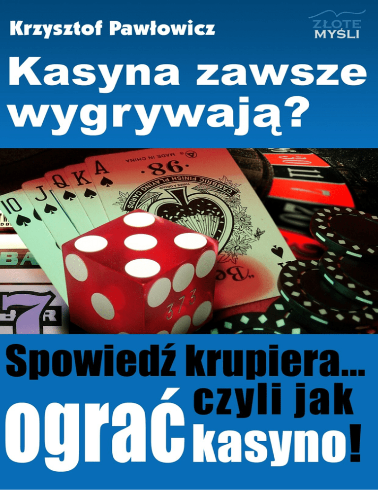 Niniejszy darmowy ebook zawiera fragment pełnej wersji pod tytułem: "Kasyna zawsze wygrywają?" Aby przeczytać informacje o pełnej wersji, kliknij tutaj Darmowa publikacja dostarczona przez eBookInfo.pl Niniejsza publikacja może być kopiowana, oraz dowolnie rozprowadzana tylko i wyłącznie w formie dostarczonej przez Wydawcę. Zabronione są jakiekolwiek zmiany w zawartości publikacji bez pisemnej zgody wydawcy. Zabrania się jej odsprzedaży, zgodnie z regulaminem Wydawnictwa Złote Myśli. © Copyright for Polish edition by ZloteMysli.pl Data: 28.12.2006 Tytuł: Kasyna zawsze wygrywają? Autor: Krzysztof Pawłowicz Wydanie II Projekt okładki: Marzena Osuchowicz Korekta: Sylwia Fortuna Skład: Anna Grabka Internetowe Wydawnictwo Złote Myśli sp. z o.o. ul. Daszyńskiego 5 44-100 Gliwice WWW: www. ZloteMysli.pl EMAIL: [email protected] Wszelkie prawa zastrzeżone. All rights reserved. SPIS TREŚCI KASYNO ZAWSZE WYGRYWA?..........................................................5 DLACZEGO?................................................................................6 TROCHĘ O MNIE..........................................................................7 KRÓTKA HISTORIA GIER HAZARDOWYCH ............................................9 GRY HAZARDOWE WSPÓŁCZEŚNIE...................................................11 ZASADY GIER I ZAKŁADÓW............................................................13 Ruletka Europejska (European Roulette) ......................................13 Ruletka Amerykańska (American Roulette)....................................23 Blackjack..............................................................................26 Kości (Craps).........................................................................31 Poker..................................................................................39 Baccarat...............................................................................45 Let it Ride............................................................................49 Pai Gow Poker.......................................................................51 Red Dog Poker.......................................................................54 3 Card Poker.........................................................................56 Casino War............................................................................58 Sic Bo..................................................................................60 Keno...................................................................................62 Automaty (slot machines, video poker)........................................63 Gry dodatkowe ......................................................................64 IDZIEMY DO KASYNA....................................................................65 KASYNA INTERNETOWE................................................................87 MITY KASYNOWE........................................................................89 SYSTEMY I STRATEGIE GIER...........................................................92 Systemy stawkowania..............................................................93 Strategie.............................................................................105 Blackjack..........................................................................110 Craps...............................................................................115 Poker..............................................................................119 Baccarat...........................................................................120 Let it Ride.........................................................................123 Pai Gow Poker....................................................................124 Red Dog (Acey-Deucey).........................................................126 3 Card Poker......................................................................127 Casino War........................................................................128 Sic Bo..............................................................................128 Keno...............................................................................130 Automaty..........................................................................130 Video Poker.......................................................................130 Jacks or Better...................................................................131 Deuces Wild.......................................................................132 JAK GRAĆ ŻEBY WYGRAĆ?...........................................................134 Ruletka..............................................................................136 Blackjack............................................................................139 Kości..................................................................................144 Poker.................................................................................145 Baccarat.............................................................................145 Pozostałe gry.......................................................................145 LINKI.....................................................................................147 NOTA PRAWNA........................................................................148 KASYNA ZAWSZE WYGRYWAJĄ? – darmowy fragment – kliknij po więcej Krzysztof Pawłowicz ● str. 5 Kasyno zawsze wygrywa? Zanim odpowiem Tobie na to pytanie, chciałbym byś uważnie przeczytał i zaznajomił się z poniższą notatką: Informacje umieszczone w tej książce są wynikiem lat moich doświadczeń, prób, gier, błędów, testów. Są one zweryfikowane wielokrotnie w wielu kasynach na całym świecie. Kasyna rządzą się jednak swoimi prawami. Duży wpływ na Twoją grę, wyniki i zachowanie w kasynie ma Twoja osobowość. Jeżeli oczekujesz informacji - teraz postaw na „6” 100 zł, a potem wygraną postaw 