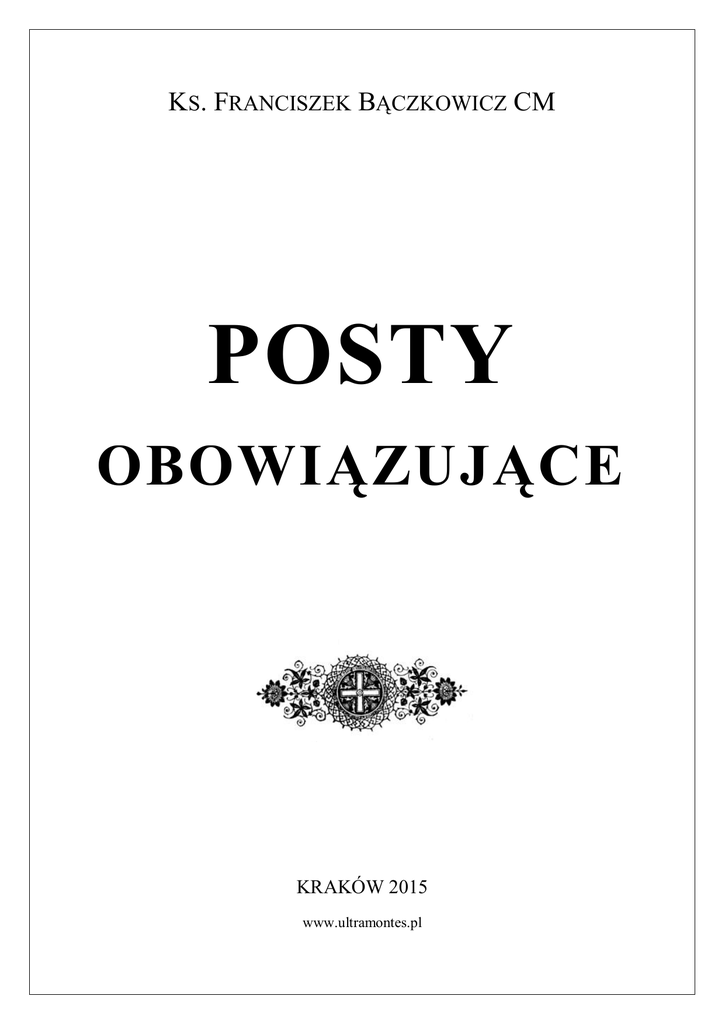 KS. FRANCISZEK BĄCZKOWICZ CM POSTY OBOWIĄZUJĄCE KRAKÓW 2015 www.ultramontes.pl POSTY OBOWIĄZUJĄCE KS. FRANCISZEK BĄCZKOWICZ CM –––––– I. Pojęcie i podział. Rozróżniamy post naturalny (ieiunium naturale), polegający na zupełnym wstrzymaniu się od jedzenia i picia, oraz kościelny (ieiunium ecclesiasticum), polegający na wstrzymaniu się od pokarmów w granicach przepisanych przez Kościół. Kodeks [Prawa Kanonicznego] rozróżnia: a) post jakościowy czyli wstrzymanie się od potraw mięsnych (abstinentia); b) post ilościowy czyli pożywanie do sytości raz dziennie (ieiunium); c) post ścisły czyli post ilościowy połączony z jakościowym (ieiunium et abstinentia). 1. Post jakościowy polega na wstrzymaniu się od mięsa i rosołu (ius ex carne); nie zabrania pożywania jaj, nabiału i rozmaitych przypraw (condimenta) nawet z tłuszczu zwierzęcego (kan. 1250). Nie wolno pożywać mięsa, tj. tego wszystkiego, co z natury swej, ze zwyczaju lub z powszechnego mniemania ludzi zalicza się do mięsa; wolno natomiast jeść ryby oraz żyjątka o zimnej krwi, które zwykły przebywać w wodzie, np. żaby, ślimaki, żółwie itp. Co się tyczy pożywania mięsa ptaków wodnych, opinie autorów są podzielone; wobec tego należy stosować się do zwyczaju danej okolicy. Pod pojęcie mięsa podpada także krew, mózg, szpik kości, słonina nietopiona oraz bulion i ekstrakty z mięsa. Niedozwolone jest pożywanie rosołu. Przez rosół należy rozumieć wodę, w której gotowane było mięso lub kości. Wolno używać jakichkolwiek przypraw do potraw, nawet z tłuszczów zwierzęcych, czyli tego wszystkiego, co się w małej ilości dodaje do głównej potrawy, by ją uczynić smaczniejszą. Dozwolone jest zatem używanie masła, łoju, sadła, smalcu, słoniny stopionej itp.; drobne kawałeczki mięsa (skwarki), 2 pozostałe po przetopieniu, wolno spożyć razem z tłuszczem. Przepis o poście jakościowym obowiązuje sub gravi [tj. pod grzechem ciężkim]. Moraliści są zdania, że spożycie potraw mięsnych do 20 gramów jest tylko grzechem lekkim, ponad 60 gramów na pewno grzechem ciężkim (1). 2. Post ilościowy polega na jednorazowym posiłku do sytości w ciągu dnia; nie zabrania wszelako rannego i wieczornego posiłku, przy którym jednak co do ilości pokarmów przestrzegać należy przyjętych zwyczajów miejscowych. Nie jest również wzbronione pożywanie potraw mięsnych i ryb przy tym samym posiłku; wolno także brać posiłek do sytości wieczorem zamiast w południe (kan. 1251) (2). Post ilościowy nie zabrania spożywania pokarmów mięsnych podczas posiłku do sytości. Natomiast przy posiłku rannym i wieczornym wolno pożywać pokarmy mięsne tylko wtedy, jeżeli w jakiejś okolicy panuje taki zwyczaj (3). W Polsce takiego zwyczaju nie było. Zwyczaj, o którym mowa, nie jest to zwyczaj prawny w ścisłym znaczeniu, formalny, lecz praktyka, powstała czy to na podstawie zwyczaju prawnego czy też dyspensy lub przywileju (4). Należy zachować zwyczaj powszechnie panujący w tym miejscu na którym się aktualnie przebywa, a nie zwyczaj w miejscu zamieszkania. Kto nie jest obowiązany do zachowania postu ilościowego (np. z powodu choroby, braku lub przekroczenia wieku) albo otrzymał od niego dyspensę, może w dni wolne od postu jakościowego, np. w poniedziałki, wtorki, środy i czwartki Wielkiego Postu, spożywać mięso przy każdym posiłku (5). Przepis o poście ilościowym obowiązuje sub gravi. Moraliści przyjmują, że na śniadanie wolno spożyć około 70 gramów a na wieczerzę około 300 gramów stałych pokarmów; spożycie ilości pokarmów przekraczających 120 gramów w ciągu dnia poza przewidzianymi posiłkami uważają za grzech ciężki, bez względu na to czy ilość ta została w ciągu dnia spożyta naraz czy też częściami (6). Co do zachowania postu ilościowego można podać następującą praktyczną wskazówkę: w dniu postu ilościowego lub ścisłego każdy powinien na śniadanie i wieczerzę o tyle mniej spożyć pokarmów, żeby między dniem postu a dniem zwykłym zachodziła naprawdę różnica, czyli żeby każdy odczuł pewne umartwienie; do zachowania postu wystarcza ująć sobie jedną trzecią z tego, co się zwykle na śniadanie lub wieczerzę spożywa. 3 3. Post ścisły polega na jednorazowym dziennie posiłku do sytości oraz na wstrzymaniu się od potraw mięsnych; dlatego też, jeżeli obowiązuje post ścisły, należy zachować przepisy odnoszące się zarówno do postu ilościowego, jak i do postu jakościowego. Kto otrzymał dyspensę tylko od postu jakościowego, jest obowiązany do zachowania postu ilościowego; wolno mu zatem pożywać mięso tylko przy jednorazowym posiłku do sytości. Kto jest zwolniony tylko od postu ilościowego, zachować musi post jakościowy. II. Dni postne. l. Post jakościowy czyli wstrzymanie się od potraw mięsnych (lex solius abstinentiae) obowiązuje we wszystkie piątki całego roku (kan. 1252 § l). 2. Post ścisły czyli tak co do ilości jak co do jakości zachować należy: w środę popielcową, piątki i soboty Wielkiego Postu, w Suche Dni, w Wigilię Zielonych Świąt i Bożego Narodzenia, oraz 7 grudnia (7) (kan. 1252 § 2). 3. Post ilościowy (ieiunium) obowiązuje we wszystkie inne dni Wielkiego Postu, tj. w poniedziałki, wtorki, środy (z wyjątkiem popielcowej i suchodniowej, kiedy obowiązuje post ścisły) i czwartki (kan. 1252 § 3). 4. W niedziele i święta nakazane (festa de praecepto), z wyjątkiem świąt przypadających w Wielkim Poście, post nie obowiązuje; jeżeli wigilia przypadnie na niedzielę, to postu nie przenosi się na sobotę (kan. 1252 § 4) (8). Wielki Post kończy się o północy z Wielkiej Soboty na Wielką Niedzielę, a nie jak dotychczas, w Wielką Sobotę w południe (9). Jeżeli w jakiejś miejscowości któreś ze świąt nakazanych jest zniesione lub przeniesione na najbliższą niedzielę, post nie przest