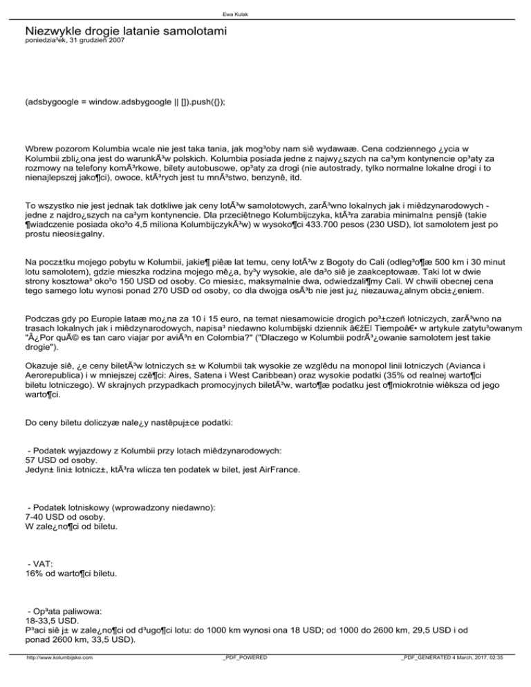 Czy kto¶ ma jeszcze ochotê lataæ po albo z Kolumbii?