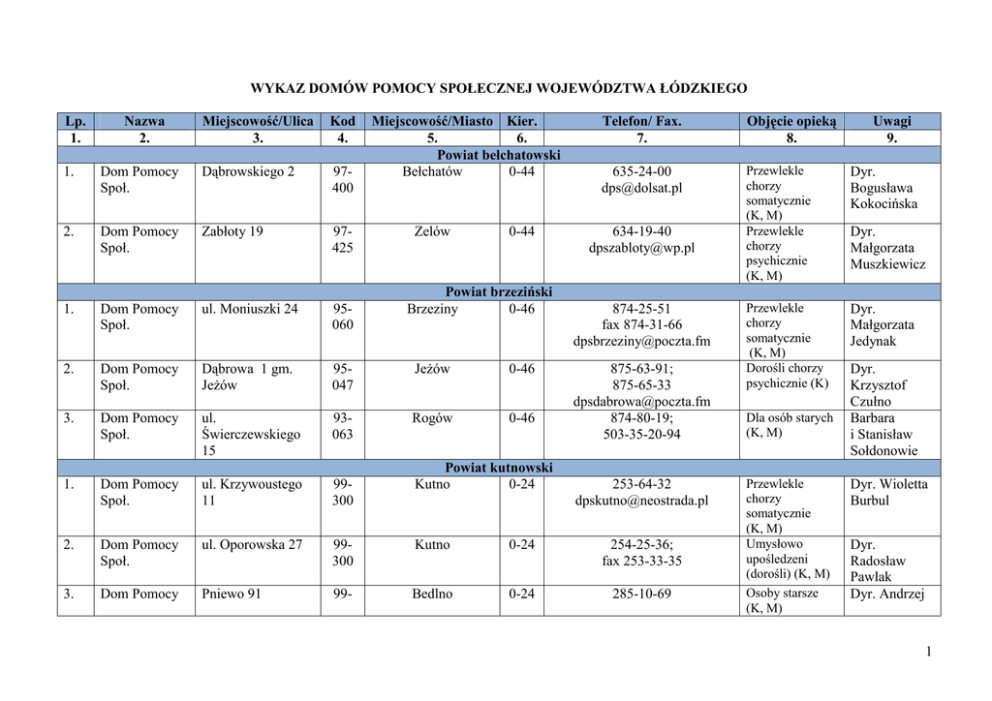 1 WYKAZ DOMÓW POMOCY SPOŁECZNEJ
