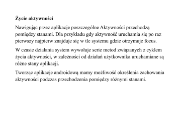 Większość aplikacji zawiera kilka różnych aktywności, kiedy tworzona
