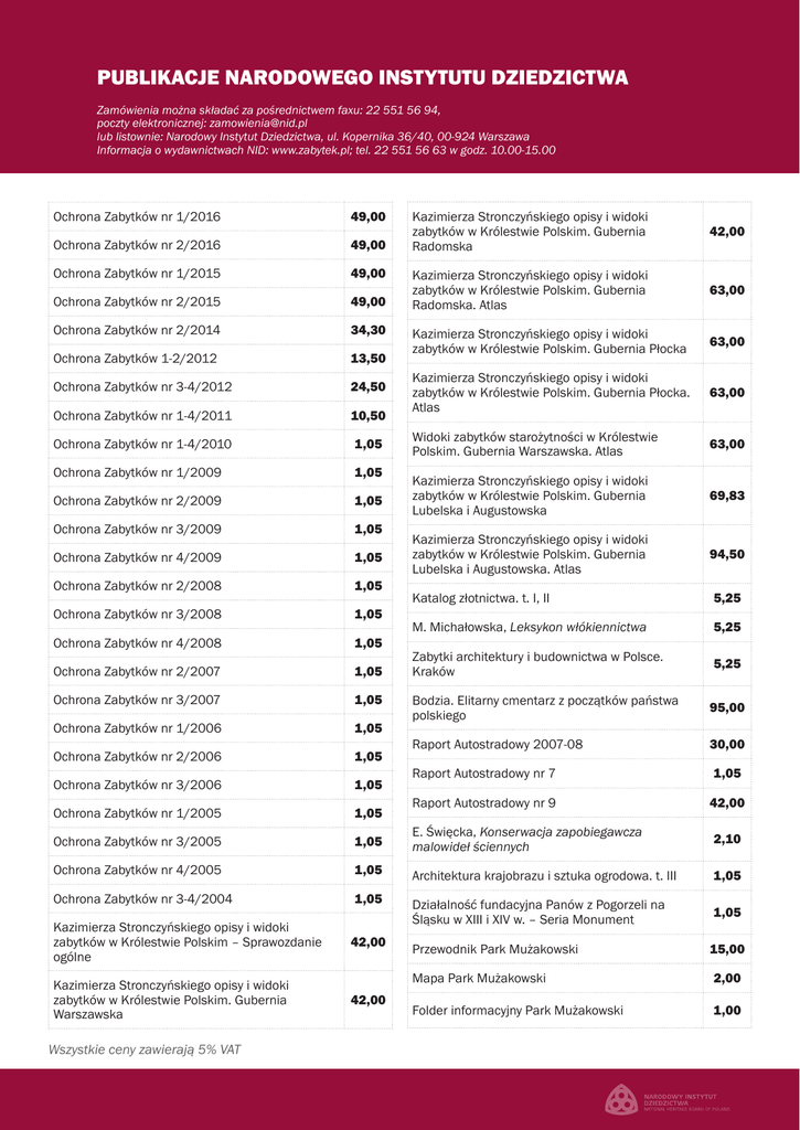 Lista wydawnictw wraz z cennikiem w formacie PDF