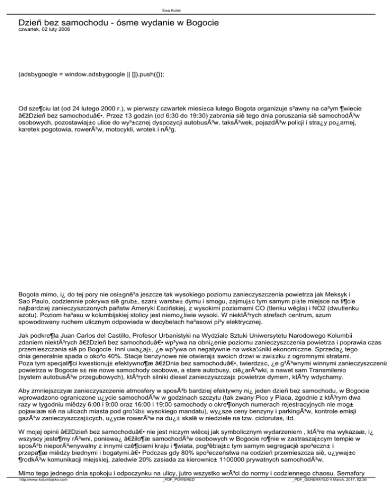 zdaniem niektórych „Dzieñ bez samochodu― wp³ywa na obni¿enie poziomu zanieczyszczenia powietrza i poprawia czas