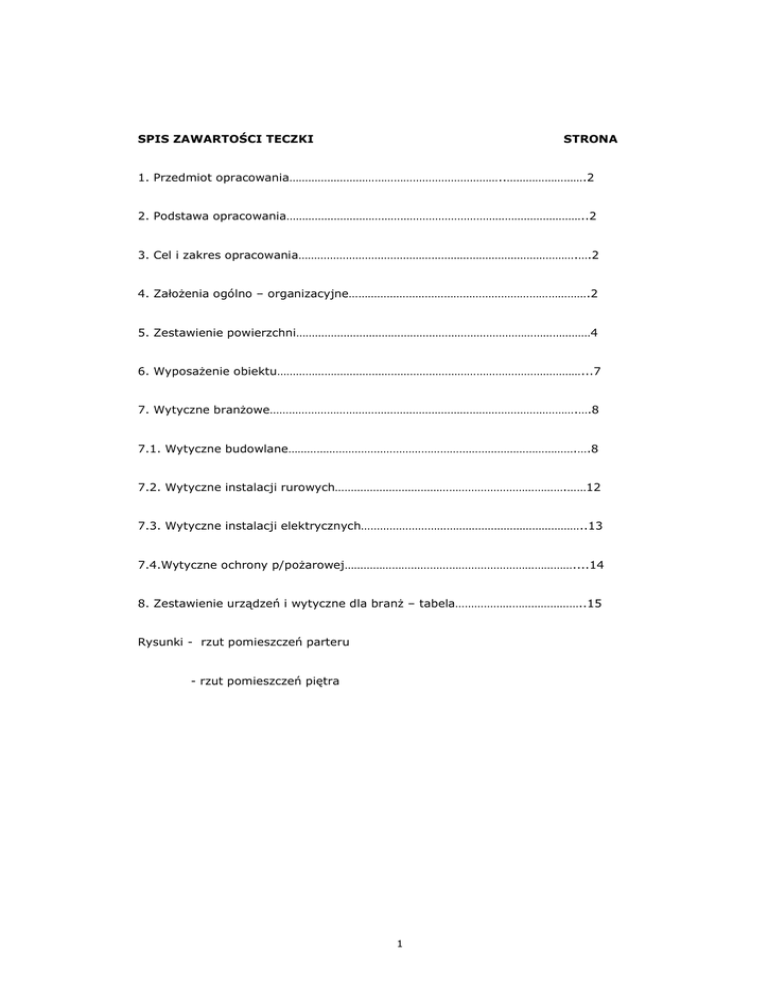 SPIS ZAWARTOŚCI TECZKI STRONA 1. Przedmiot opracowania
