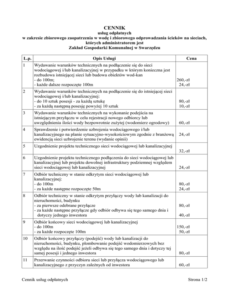 cennik - Zakład Gospodarki Komunalnej w Swarzędzu