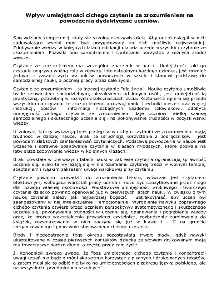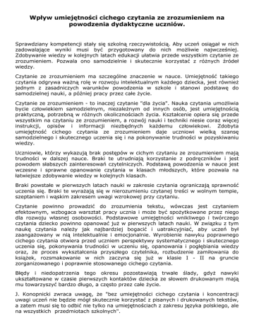 Wpływ umiejętności cichego czytania ze zrozumieniem na