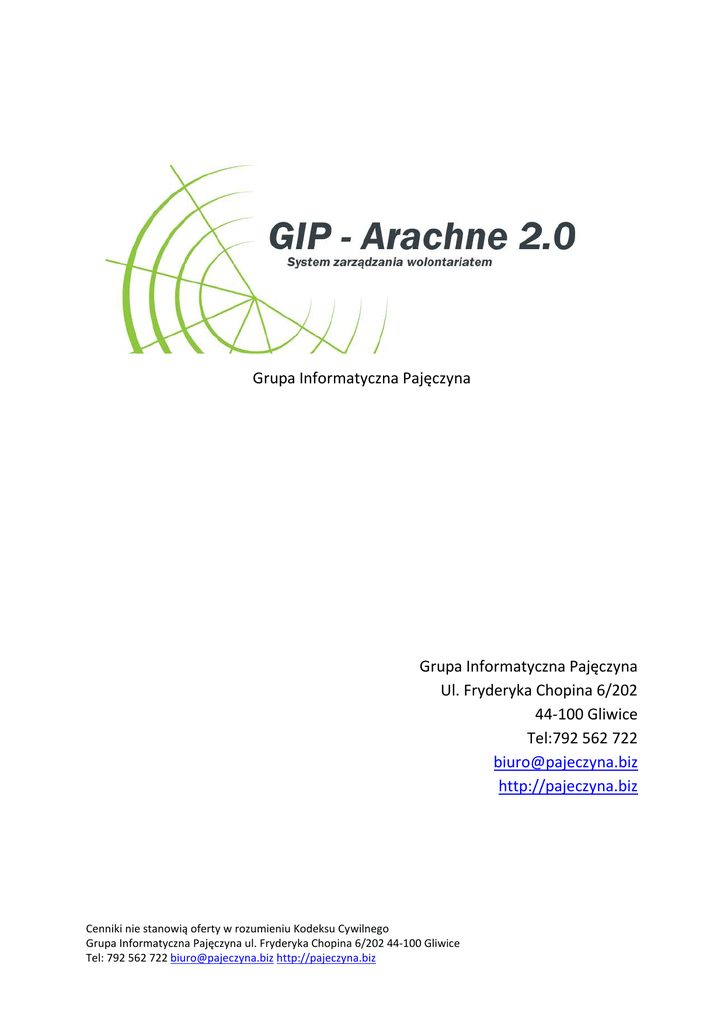 GIP - arachne 2.0 cennik - Grupa Informatyczna Pajęczyna