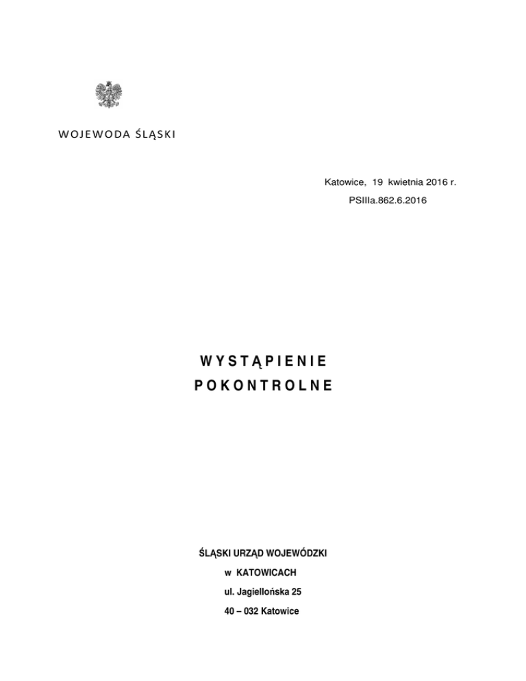 Wystąpienie pokontrolne z kontroli PSIIIa.862.6.2016 w Powiatowym