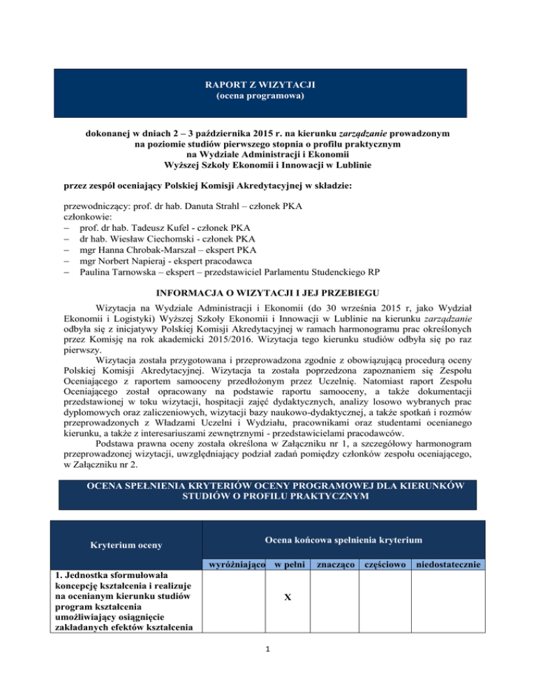 RAPORT Z WIZYTACJI - Polska Komisja Akredytacyjna