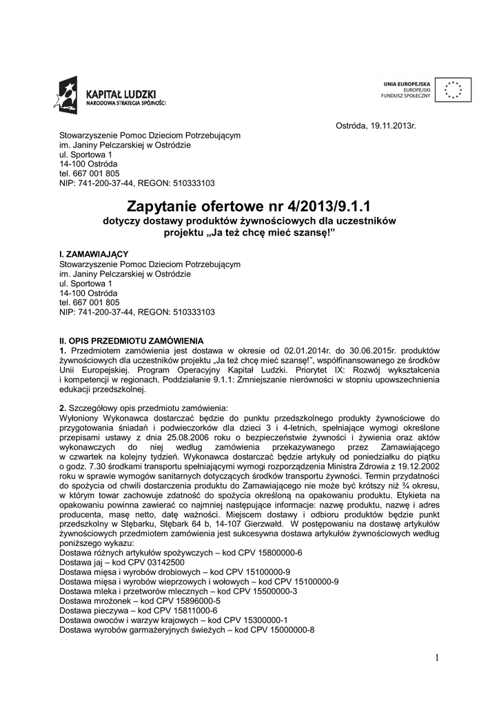 Zapytanie ofertowe nr 4/2013/9.1.1