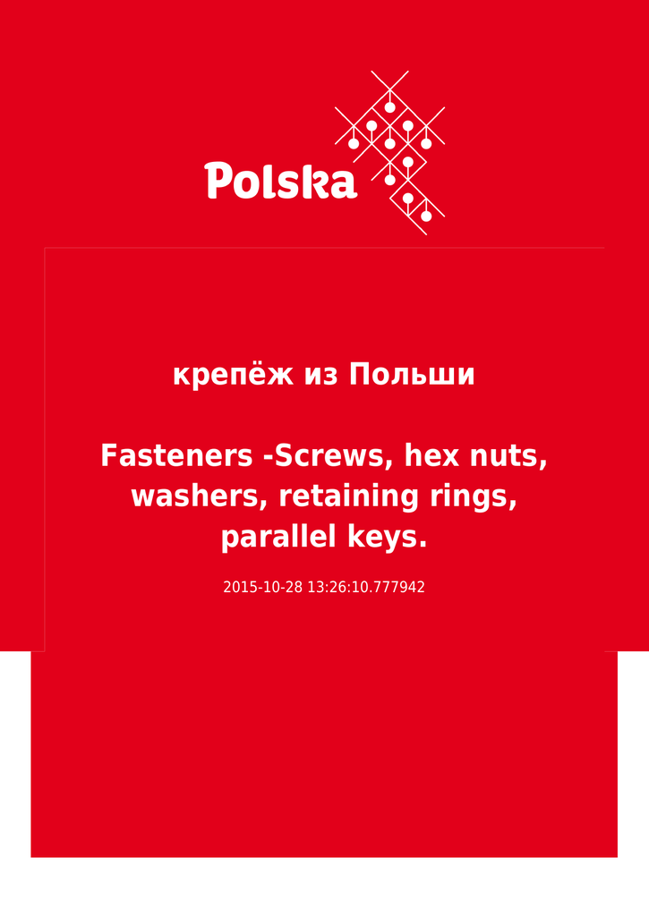 крепёж из Польши Fasteners -Screws, hex nuts, washers, retaining