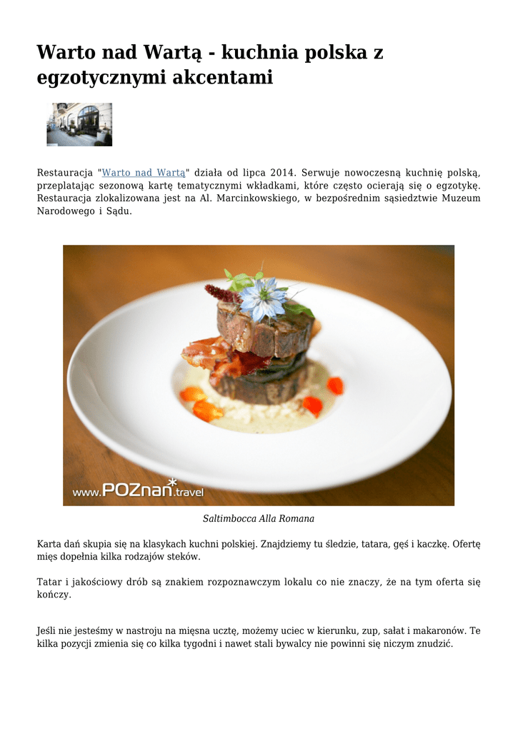 Warto nad Wartą - kuchnia polska z egzotycznymi