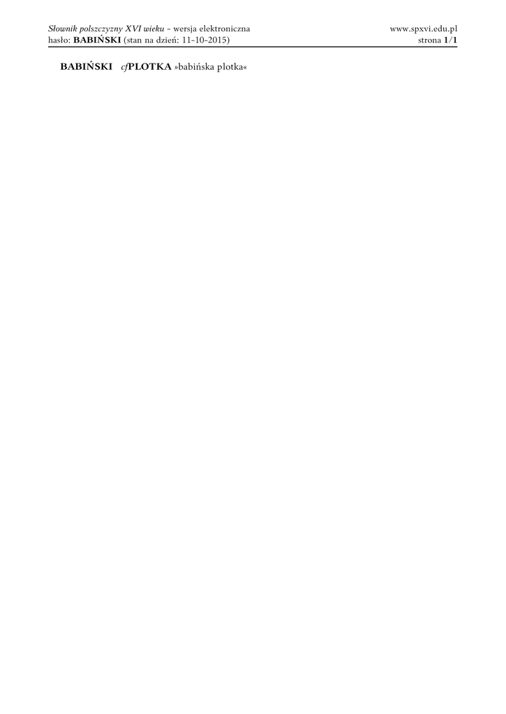 Słownik polszczyzny XVI wieku - wersja elektroniczna hasło: BABIŃSKI (stan na dzień: 11-10-2015) BABIŃSKI cfPLOTKA »babińska plotka« www.spxvi.edu.pl strona 1/1