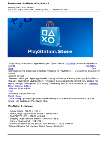 - Killzone Shadow Fall Intercept Online Co-op – 63 zł/42 zł