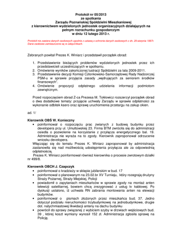 Protokół nr 05/2013 ze spotkania Zarządu Poznańskiej Spółdzielni
