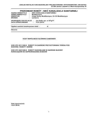 PRZEDMIAR ROBÓT sieć kanalizacyjna modliborzyce