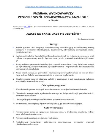program wychowawczy - Zespół Szkół Ponadgimnazjalnych nr 1 w