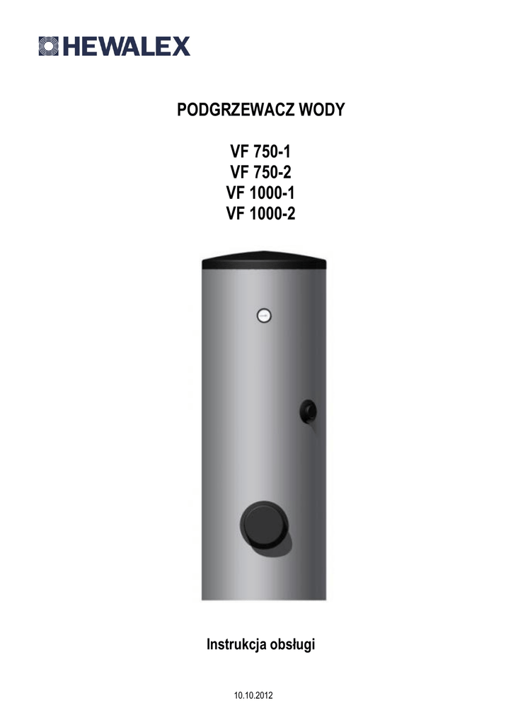 PODGRZEWACZ WODY VF 750-1 VF 750-2 VF 1000-1 VF 1000-2 Instrukcja obsługi 10.10.2012 1. PRZEZNACZENIE Podgrzewacze serii VF przeznaczone są do stałego kontaktu z wodą pitną (użytkową). Podgrzewacze serii VF mogą służyć również jako zasobniki buforowe dla instalacji grzewczych. UWAGA! Podgrzewacz powinien być zamontowany w pomieszczeniu o temp. powietrza +5C do 45 °C i wilgotności względnej powietrza maksymalnie 80%. 2. OPIS TECHNICZNY Podgrzewacze serii VF posiadają spiralne wężownice i mogą służyć do podgrzewania wody użytkowej energią cieplną z zewnętrznego źródła ciepła. Zbiornik pogrzewacza serii VF wykonany jest z blachy stalowej. Wnętrze podgrzewacza jest emaliowane. Każdy podgrzewacz wyposażony jest w anodę magnezową zabezpieczającą podgrzewacz przed korozją oraz kołnierz rewizyjny DN180 przykręcony śrubami M1025 (10szt). Zewnętrzna izolacja wykonana jest z miękkiej pianki poliuretanowej o grubości 80mm, pokrytej płaszczem wykonanym z PVC w kolorze RAL 9005. 3. DANE TECHNICZNE Podgrzewacze 1-wężownicowe Podgrzewacz VF 750-1 Podgrzewacz VF 1000-1 10.10.2012 Podgrzewacze 2-wężownicowe Podgrzewacz VF 750-2 Podgrzewacz VF 1000-2 Wymiar Króciec przyłączeniowy VF 750-1 VF 1000-1 Króciec przyłączeniowy VF 750-2 VF 1000-2 A B C E F G H I J K L GZ 5/4“ GZ 5/4“ GZ 5/4“ GZ 1“ GZ ¾“ GZ 5/4“ GW 5/4“ - 99 288 1314 1417 2023 1886 1932 378 103 296 1324 1489 2050 1900 1959 386 GZ 5/4“ GZ 1“ GZ 1“ GZ 1“ GZ ¾“ GZ 1“ GZ 5/4“ GW 5/4“ GW 6/4“ - 99 288 830 1151 1242 1467 2023 1887 1931 1005 378 103 296 884 1153 1243 1423 2050 1905 1959 1024 386 UWAGA! Wszystkie wymiary podane są w mm. Typ podgrzewacza Objętość, dm3 Średnica wewnętrzna Ød, mm Średnica zewnętrzna ØD, mm Wysokość całkowita H, mm Ciśnienie max. w zbiorniku, MPa Ciśnienie max. w wężownicy, MPa Maksymalna temp. wody, °C Zalecana temp. wody, °C Powierzchnia wymiennika górnego, m2 Pojemność wymiennika górnego, dm3 Powierzchnia wymiennika dolnego, m2 Pojemność wymiennika dolnego, dm3 Waga, kg VF 750-1 750 750 910 2023 1 1 95 65 3,7 33,7 233,5 10.10.2012 VF 750-2 750 750 910 2023 1 1 95 65 1,13 8,2 1,93 13,5 220,5 VF 1000-1 1000 850 1010 2050 1 1 95 65 4,5 40,6 297,0 VF 1000-2 1000 850 1010 2050 1 1 95 65 1,12 7,9 2,45 17,1 271,5 4. PODŁĄCZENIE PODGRZEWACZA DO INSTALACJI WODY UŻYTKOWEJ 5 Rys. 1 4 3 2 1 Podłączenie pogrzewacza do instalacji zimnej wody jest przedstawione na rys.1. 1 Zawór odcinający 2 Zawór zwrotny 3 Naczynie przeponowe: VF 750-1, VF 750-2 : (min.35dm3), VF 1000-1, VF 1000-2 : (min.50dm3) 4 Zawór bezpieczeństwa (max. ciśnienie otwarcia – wg tabliczki znamionowej) 5 Zawór spustowy - Pogrzewacz musi być wyposażony w zawór bezpieczeństwa o maksymalnym ciśnieniu otwarcia podanym na tabliczce znamionowej naklejonej na podgrzewaczu. Zawór bezpieczeństwa zamontować na dopływie zimnej wody. Między pogrzewaczem a zaworem bezpieczeństwa nie może znajdować się żaden zawór odcinający. - W trakcie montażu należy postępować zgodnie z instrukcją producenta urządzenia zabezpieczającego. - Przed uruchomieniem instalacji sprawdzić działanie zaworu bezpieczeństwa poprzez jego otwarcie. W trakcie normalnej eksploatacji należy dokonywać kontroli co najmniej raz na miesiąc. - Z zaworu bezpieczeństwa może wyciekać woda, dlatego wylot z zaworu musi być swobodnie otwarty. - Aby zapobiec wyciekaniu wody z zaworu bezpieczeństwa między podgrzewaczem a zaworem bezpieczeństwa zamontować należy naczynie przeponowe o ciśnieniu wstępnym równym ciśnieniu panującym w sieci wodociągowej. - W przypadku występowania w instalacji wodociągowej ciśnienia równego lub wyższego niż ciśnienie otwarcia zaworu bezpieczeństwa, należy dodatkowo zamontować reduktor ciśnienia wody przed zaworem bezpieczeństwa. - Aby zapobiec ewentualnemu poparzeniu się gorącą wodą, na wyjściu wody z podgrzewacza zaleca się zamontowanie zaworu mieszającego z funkcją antyoparzeniową. - W celu łatwego opróżnienia podgrzewacza z wody na zasilaniu zimnej wody zamontować zawór spustowy. UWAGI! Wszystkie instalacje muszą być wykonane zgodnie z obowiązującymi przepisami. W celu poprawnego ustawienia zaworu redukcyjnego zalecamy, aby ciśnienie w podgrzewaczu było o 20% niższe, niż ciśnienie otwarcia zaworu bezpieczeństwa. 10.10.2012 5. PRZYKŁADOWE PODŁĄCZENIE POGRZEWACZA DO INSTALACJI GRZEWCZYCH Przykładowe podłączenie pogrzewacza do instalacji grzewczej z kolektorami słonecznymi przedstawiono na rys.2. Wszystkie urządzenia grzewcze podłączyć do odpowiednich króćców podgrzewacza. Jeżeli instalacja wyposażona jest w kolektory słoneczne to należy je podłączyć zawsze do dolnej wężownicy podgrzewacza. Dodatkowe urządzenie grzewcze podłączyć do górnej wężownicy. Do podgrzewaczy wyposażonych w odpowiednie króćce można dodatkowo zamontować grzałkę elektryczną. Wszystkie przewody połączeniowe należy odpowiednio odizolować cieplnie. Jeżeli zamontowany jest obieg cyrkulacji ciepłej wody użytkowej za pomocą pompy cyrkulacyjnej, przed pompą w kierunku tłoczenia wody zamontować zawór zwrotny w celu zapobiegania grawitacyjnego wynoszenia ciepła z podgrzewacza wody. Z uwagi dużych strat ciepła poprzez cyrkulację, pracę pompy cyrkulacyjnej ograniczyć do minimum. Rys.2 10.10.2012 6. CZYSZCZENIE POGRZEWACZA I WYMIANA PRĘTA ANODOWEGO W wyniku powtarzanego ogrzewania wody na wewnętrznych ścianach podgrzewacza, a przede wszystkim na wieku kołnierza będzie osadzał się kamień. Osadzanie się kamienia jest zależne od twardości, temperatury oraz ilości zużywanej wody. Zalecamy przeprowadzenie kontroli eksploatacyjnej podgrzewacza po dwóch latach użytkowania. W razie dużej ilości kamienia kotłowego podgrzewacz należy wyczyścić. Raz w roku należy skontrolować stan i zużycie anody magnezowej. Żywotność anody jest obliczona na dwa lata eksploatacj