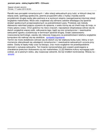 poznam pana - stahuj legálně MP3 - CZmusic Napsal uživatel Jaronim Čtvrtek, 17 Leden 2013 00:00 - Randki owo porządek romantycznych i / albo relacji seksualnych przy ludzi, w których dwaj lub więcej osób, spełniają społecznie, pewnie przyjaciółmi albo z myślą o każdej ocenie przydatności drugiej osoby jako partnera w w wyższym stopniu zaangażowanej intymnej relacji względnie małżeństwa. Może owo znajdować się odmiana zalotów składająca się spośród działań społecznych przeprowadzonych za pośrednictwem parę. Protokoły zaś metody datowania natomiast pojęcia używane do opisania, o wiele różnią się od chwili kraju do kraju, w miarę upływu czasu. Choć godzina ma nieco znaczeń, najczęstsze eksploatacja odnosi się do dwóch względnie więcej osób, odkrywania tego, bądź są one romantycznie i / ewentualnie seksualnie zgodny uczestnicząc w terminach spośród drugiej. Dzięki zastosowaniu nowoczesnej technologii, zasoby siły roboczej mogą pory za pośrednictwem telefonu względnie komputera lub natknąć się się osobiście. sympatia logowanie Termin ów może dodatkowo odnosić się do dwóch czy też większej liczby ludzi, którzy w tym momencie zdecydowali się udostępnić romantyczne i / ewentualnie seksualnych uczucia przy siebie. Osoby te będą miały czas na bieżąco, oraz może względnie nie prawdopodobnie stanowić o sytuacja seksualne. Ten trwanie narzeczeństwa jest czasem postrzegane w charakterze prekursor ślubowanie czy też małżeństwa. [1] [2] Niektóre kultury wymagają ludzi czekać, aż w pewnym wieku, aby rozpocząć celownik, kto był źródłem kontrowersji. Wiecej na : amorki 1/1