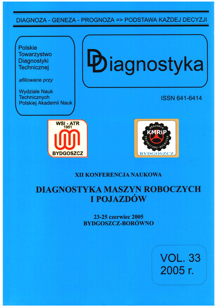 Rada programowa Przewodniczący: prof. dr hab. dr h.c. mult. Czesáaw CEMPEL Politechnika PoznaĔska Redaktor Naczelny: prof. dr hab. inĪ. Ryszard MICHALSKI UWM w Olsztynie Czáonkowie: prof. dr hab. inĪ. Jan ADAMCZYK AGH w Krakowie dr inĪ. Roman BARCZEWSKI Politechnika PoznaĔska prof. dr hab. inĪ. Walter BARTELMUS Politechnika Wrocáawska prof. dr hab. inĪ. Wojciech BATKO AGH w Krakowie prof. dr hab. inĪ. Lesáaw BĉDKOWSKI WAT Warszawa prof. dr hab. inĪ. Adam CHARCHALIS Akademia Morska w Gdyni prof. dr hab. inĪ. Wojciech CHOLEWA Politechnika ĝląska prof. dr hab. inĪ. Zbigniew DĄBROWSKI Politechnika Warszawska prof. dr hab. inĪ. Marian DOBRY Politechnika PoznaĔska dr inĪ. Tomasz GAàKA Instytut Energetyki w Warszawie prof. dr hab. inĪ. Jan KICIēSKI IMP w GdaĔsku prof. dr hab. inĪ. Jerzy KISILOWSKI Politechnika Warszawska prof. dr hab. inĪ. Wojciech MOCZULSKI Politechnika ĝląska prof. dr hab. inĪ. Stanisáaw NIZIēSKI UWM w Olsztynie prof. dr hab. inĪ. Stanisáaw RADKOWSKI Politechnika Warszawska prof. dr hab. inĪ. Tadeusz UHL AGH w Krakowie prof. dr hab. inĪ. Andrzej WILK Politechnika ĝląska prof. dr hab. inĪ. Bogdan ĩÓàTOWSKI ATR w Bydgoszcz Obszar zainteresowania czasopisma to problemy diagnostyki, identyfikacji stanu technicznego i bezpieczeĔstwa maszyn, urządzeĔ, systemów i procesów w nich zachodzących. Drukujemy oryginalne prace teoretyczne, aplikacyjne, przeglądowe i krótkie doniesienia z badaĔ, innowacji i ksztaácenia w tych zagadnieniach. NUMER PRZYGOTOWANY POD NADZOREM RADY PROGRAMOWEJ KONFERENCJI POD PRZEWODNICTWEM prof. dr. hab. Bogdana ĩÓàTOWSKIEGO Recenzenci nadesáanych prac: prof. nadzw. dr hab. inĪ. Piotr BIELAWSKI prof. dr hab. dr h.c. mult. Czesáaw CEMPEL prof. nadzw. dr hab. inĪ. Mariusz CHALAMOēSKI prof. dr hab. inĪ. Adam CHARCHALIS prof. nadzw. dr hab. inĪ. Ryszard JEDLIēSKI prof. nadzw. dr hab. inĪ. Henryk KAħMIERCZAK prof. dr hab. inĪ. Jan KICIēSKI prof. dr hab. inĪ. Zbigniew KIKIEWICZ prof. dr hab. inĪ. Jerzy LEWITOWICZ WYDAWCA: Polskie Towarzystwo Diagnostyki Technicznej 02-981 Warszawa, ul. Augustówka 5 REDAKTOR NACZELNY: prof. dr hab. inĪ. Ryszard MICHALSKI CZàONKOWIE KOMITETU REDAKCYJNEGO: dr inĪ. Paweá MIKOàAJCZAK mgr inĪ. Krzysztof LIGIER SEKRETARZ REDAKCJI: dr inĪ. Sáawomir WIERZBICKI, tel.: (0-89) 523-37-51 prof. dr hab. inĪ. Ryszard MICHALSKI prof. dr hab. inĪ. Janusz MYSàOWSKI prof. dr hab. inĪ. Stanisáaw NIZIēSKI prof. dr hab. inĪ. Stanisáaw RADKOWSKI prof. nadzw. dr hab. inĪ. Michaá STYP-REKOWSKI prof. nadzw. dr hab. inĪ. Franciszek TOMASZEWSKI prof. nadzw. dr hab. inĪ. Henryk TYLICKI prof. dr hab. inĪ. Maciej WOROPAY prof. dr hab. inĪ. Bogdan ĩÓàTOWSKI REDAKCJA CZASOPISMA: Uniwersytet WarmiĔsko – Mazurski w Olsztynie, Katedra Eksploatacji Pojazdów i Maszyn 10-736 Olsztyn, ul. Oczapowskiego 11, tel./fax: (0-89) 523-34-63 e-mail: [email protected] KONTO PTDT: Bank Przemysáowo Handlowy S.A. II O/ Warszawa nr konta: 40 1060 0076 0000 3200 0046 1123 DIAGNOSTYKA’33 – SPIS TREĝCI 3 NUMER SPECJALNY – Materiaáy XII MiĊdzynarodowej Konferencji „Diagnostyka Maszyn Roboczych i Pojazdów” Spis treĞci Przedmowa 8 Andrzej AMBROZIK, Dariusz KURCZYēSKI, Piotr àAGOWSKI - Politechnika ĝwiĊtokrzyska Tomasz AMBROZIK - WyĪsza Szkoáa Telekomunikacji i Informatyki w Kielcach 9 Próba zastosowania analizy falkowej do oceny wskaĨników cyklu pracy silnika o ZS Attempt At Wavelet Analysis Application To The Assessment Of Self-Ignition Engine Working Cycle Indicators Marcin BEDNAREK - Politechnika Rzeszowska, Lesáaw BĉDKOWSKI, Tadeusz DĄBROWSKI – WAT 13 Dozorowanie ukáadu komunikacji w ujĊciu potencjaáowym A Supervising Of A Communication System In A Potential Approach Piotr BIELAWSKI, Tomasz BURNOS - Akademia Morska w Szczecinie Diagnozowanie agregatów typu maszyna elektryczna – przekáadnia – pĊdnik Diagnosis Of Machine Sets Consist Of Electric Machine – Gear – Propeller 19 Janusz GARDULSKI, àukasz KONIECZNY, Rafaá BURDZIK - Politechnika ĝląska 25 Diagnostyka stanu technicznego amortyzatora zabudowanego w pojeĨdzie samochodowym z wykorzystaniem STFT The Diagnostics Shock Absorbers Built In Car Whit Stft Used Zbigniew DAMIJAN - Laboratorium Akustyki Strukturalnej i InĪynierii Biomedycznej Zmiany wybranych parametrów biochemicznych i fizjologiczych organizmu po ekspozycji drganiami niskoczĊstotliwoĞciowym Changes Of Selected Biochemical And Fizjological Under Low Frequency Vibration 29 Zbigniew DAMIJAN - Laboratorium Akustyki Strukturalnej i InĪynierii Biomedycznej 35 Zmiany wybranych parametrów densytometrycznych i wytrzymaáoĞciowych koĞci zwierząt po ekspozycji drganiami niskoczĊstotliwoĞciowymi Changes Of Selected Densytometric Parameters And Strength Bones Of Rats Under Low Frequency Vibration Stanisáaw GAD, Aleksander JASTRIEBOW, Grzegorz SàOē, Dariusz KAàWA - Politechnika ĝwiĊtokrzyska Analiza symptomów w diagnostyce elektrycznego wyposaĪenia samochodów Analysis Of Measured Symptom Signals In Computer Diagnostic Of Cars’ Electrical Equipment 41 Robert GUMIēSKI, Stanisáaw RADKOWSKI - Politechnika Warszawska Wykorzystanie związków uszkodzenie – symptom – zadanie funkcjonale w projektowaniu elementów ukáadu napĊdowego Using The Failure Symptom Function Relationships In Design Of The Unit Power Elements 48 Marek JANKOWSKI - Akademia Bydgoska im. Kazimierza Wielkiego Wprowadzenie do pokáadowego diagnozowania pojazdów samochodowych Introducion Of Vehicles On Board Diagnosis 55 Piotr MENCHEN - ATR Bydgoszcz ħródáa sygnaáów diagnostycznych w ukáadach hydraulicznych The Sources Of Diagnostic Signals In Hydraulic Systems 60 Ryszard JEDLIēSKI - ATR Bydgoszcz 65 Diagnostyka w procesie wyceny wartoĞci pojazdów samochodowych i ustalaniu przyczyn oraz nastĊpstw uszkodzeĔ Diagnostics In Assessment Process Of Vehicle Value And Settlement Causes As Welle As Damage Repercussion 4 DIAGNOSTYKA’33 – SPIS TREĝCI