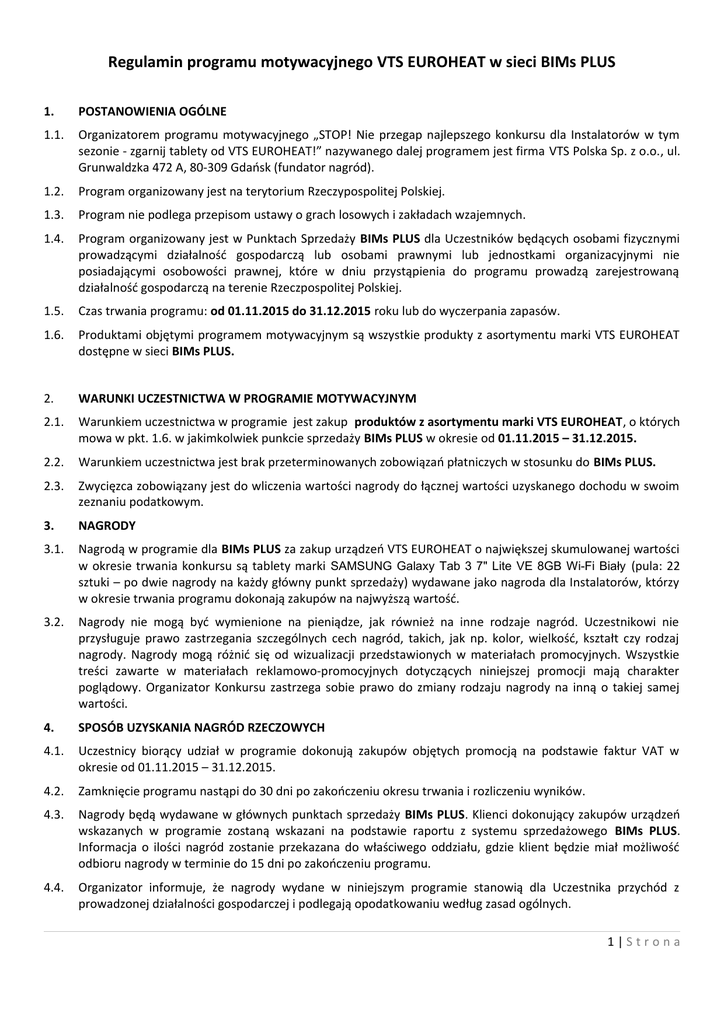 Regulamin programu motywacyjnego VTS