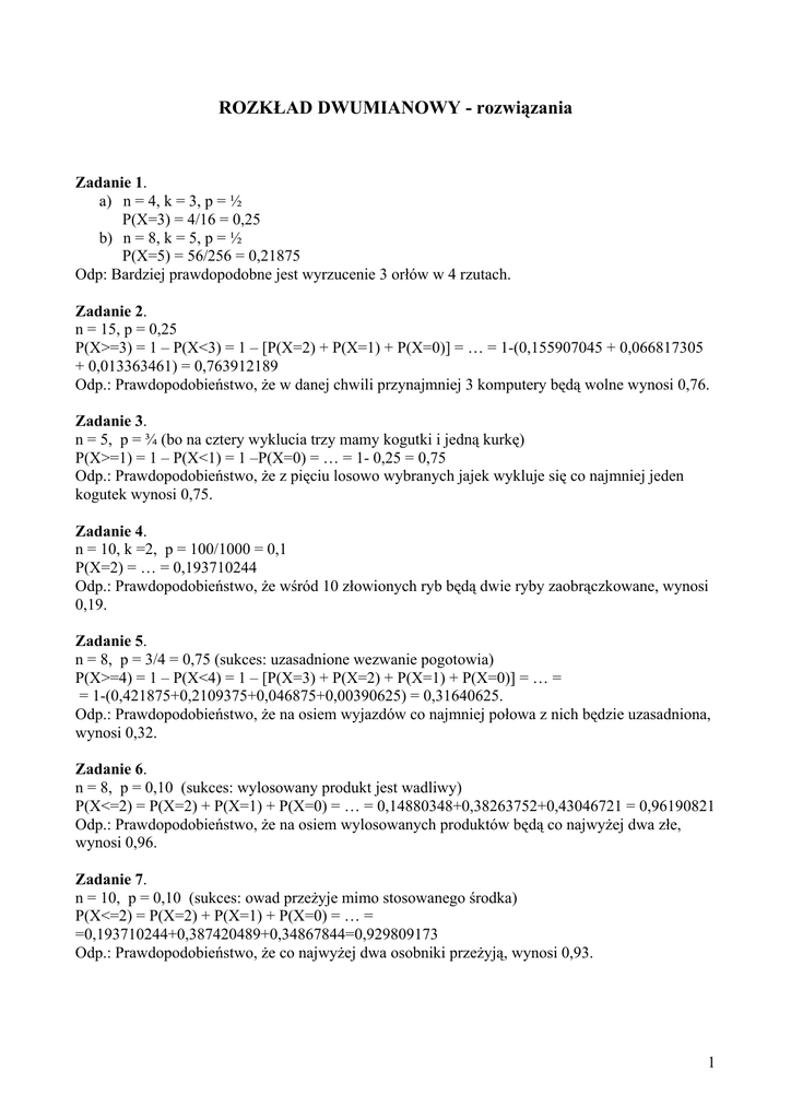 ROZKŁAD DWUMIANOWY_rozwiazania - E-SGH