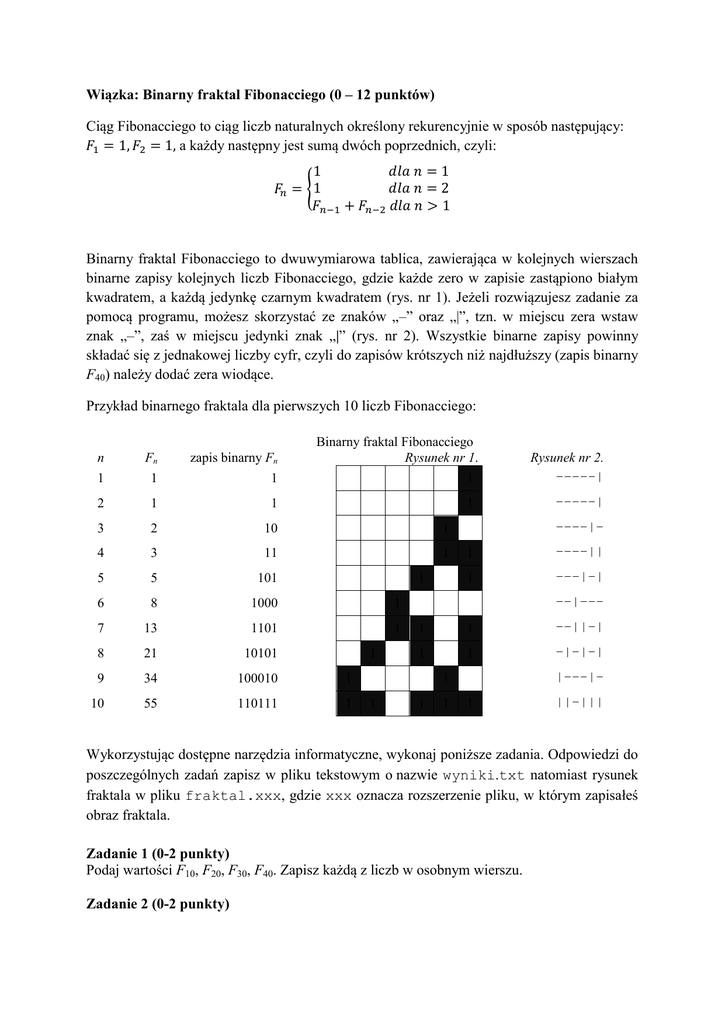 Wiązka: Binarny fraktal Fibonacciego (0 – 12 punktów)
