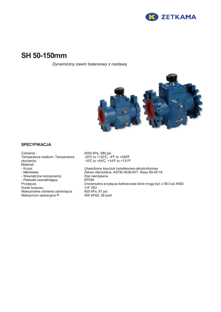 zawór balansowy dynamiczny SH DN 50-150 mm