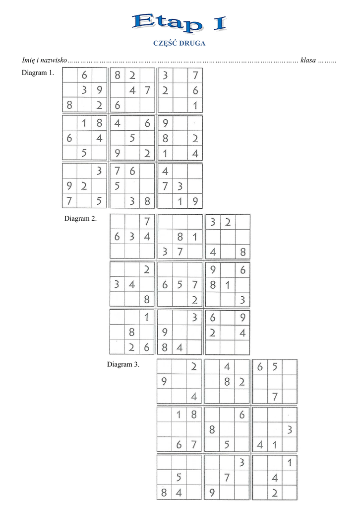 CZĘŚĆ DRUGA Imię i nazwisko……………………………………………………………………………………………… klasa ……… Diagram 1. Diagram 2. Diagram 3.