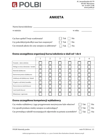 Ankieta Polbi Sp. z o. o. - ocena kursu / szkolenia / wykładowcy