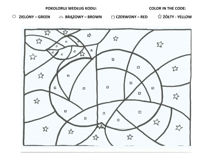 POKOLORUJ WEDŁUG KODU: ZIELONY – GREEN BRĄZOWY – BROWN COLOR IN THE CODE: CZERWONY – RED ŻÓŁTY - YELLOW