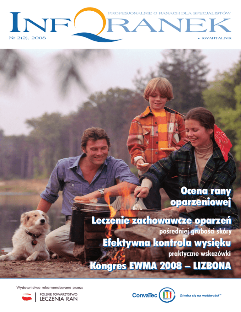 Nr 2(2), 2008 KWARTALNIK Ocena rany oparzeniowej Leczenie zachowawcze oparzeń pośredniej grubości skóry Efektywna kontrola wysięku praktyczne wskazówki Kongres EWMA 2008 – Lizbona LIZBONA Wydawnictwo rekomendowane przez: Słowo przewodnie Spis treści Ocena rany oparzeniowej...................................... 4 Leczenie zachowawcze oparzeń............................. 7 Silnie sączące rany...............................................11 Profilaktyka i zapobieganie odleżynom...........................................................13 Kongres EWMA 2008 – Lizbona.........................16 Zakupy opatrunków przez Internet.........................17 Podróże po dyżurze – LIZBONA............................17 Jadło = / sadło . ................................................... 18 Specjalistyczne Centra Leczenia Ran.....................19 100% ConvaTec................................................... 20 Nr 2(2), 2008 KWARTALNIK Bezpłatny magazyn. Ukazuje się co 3 miesiące od marca 2008 r. Redaktor naczelny: Patryk Martynus Adres redakcji: ConvaTec Polska Sp. z o.o. Al. Armii Ludowej 26, 00-609 Warszawa Prenumerata: Bezpłatną prenumeratę można zamawiać, przesyłając pod adresem redakcji wypełniony kupon dołączony do numeru. Wydawca: onvaTec Polska Sp. z o.o. C Al. Armii Ludowej 26, 00-609 Warszawa tel. (22) 579 66 66, faks (22) 579 66 44 © 2008 Copyright by ConvaTec Polska Sp. z o.o. Wszelkie prawa zastrzeżone. Żadna część tego kwartalnika nie może być kopiowana ani odtwarzana w jakiejkolwiek formie i przy użyciu jakichkolwiek środków bez pisemnej zgody Wydawcy. bezpłatna infolinia: 0 800 120 093 e-mail: [email protected] www.convatec.pl 2 Drodzy Czytelnicy! Czas biegnie nieubłaganie, wydawać by się mogło, że zupełnie niedawno trafił do Państwa pierwszy, historyczny egzemplarz „Inforanka”, a tu już ukazuje się drugie, tegoroczne wydanie. Zanim zachęcę do lektury bieżącego numeru, pragnę podzielić się z Państwem informacją, że blisko tysiąc osób zdecydowało się już na stałą bezpłatną prenumeratę naszego kwartalnika. A jego nakład rośnie również bardzo szybko. Bieżące wydanie dystrybuujemy w ilości 6 000 egzemplarzy. Serdecznie dziękujemy za tak ciepłe przyjęcie i zapewniamy, że dołożymy wszelkich starań, aby „Inforanek” wciąż cieszył się tak dużym zainteresowaniem. W obecnym wydaniu skupiamy się na problemach ran oparzeniowych. Od lat w okresie wiosenno-letnim obserwuje się wzrost ilości tego typu urazów, chociażby ze względu na oparzenia powstałe w trakcie rozpalania ognisk, czy też w związku z tak obecnie popularnym w Polsce grillowaniem. Zwracamy również uwagę na problem powszechnie występujących odleżyn. Pokazujemy praktyczne sposoby wspierania pacjentów, aby ryzyko powstania odleżyn było jak najmniejsze. Cieszymy się, że możemy powitać w gronie autorów kolejnych, uznanych specjalistów. Jesteśmy przekonani, że wiedza, którą podzielą się oni z Państwem, okaże się bardzo przydatna w Państwa codziennej praktyce. Ponadto polecamy Państwa uwadze relację z Europejskiego Kongresu Leczenia Ran, który w tym roku odbył się w Lizbonie. Naszym celem jest poszerzenie dostępności nowoczesnych opatrunków dla pacjentów oraz rozwój specjalistycznych gabinetów, w których będzie można skorzystać z porad specjalistów. O tych naszych projektach przeczytają Państwo w częściach „100% ConvaTec” oraz „Zakupy opatrunków przez Internet” i „Specjalistyczne Centra Leczenia Ran”. W części relaksacyjnej przepisy kulinarne oraz zaproszenie na wycieczkę do uroczej Lizbony. Niezmiennie będziemy wdzięczni za wszelkie uwagi czy komentarze, które mogą Państwo przesyłać mailem: [email protected] lub w sposób tradycyjny, pocztą, na adres redakcji. Każdorazowo wykorzystamy je w celu podniesienia atrakcyjności naszego pisma. Życzę interesującej lektury. Patryk Martynus Szanowni Państwo! Z wielką przyjemnością chciałbym poinformować, że zainteresowanie pierwszym numerem „Inforanka”, który pojawił się na rynku 3 miesiące temu, przeszło nasze oczekiwania. Nie spodziewaliśmy się aż tak wielkiej akceptacji dla naszego pomysłu i zaskoczyły nas częste prośby o nadesłanie dodatkowych egzemplarzy naszego biuletynu. Z tego powodu musieliśmy dwukrotnie dokonywać dodruków „Inforanka”, a cały nakład zamknął się liczbą 4 tysięcy egzemplarzy. Nie ukrywamy, że tak wielkie zainteresowanie „Inforankiem” sprawiło nam ogromną satysfakcję. Udany start naszego kwartalnika pokazał, że rynek informacji na temat leczenia ran jest – z jednej strony – dużo bardziej otwarty i chłonny wiedzy o innowacjach, niż wynikało to z naszych wstępnych ocen – z drugiej zaś – cechuje się brakiem publikacji o charakterze popularnonaukowym, poświęconych tej tematyce. Co ciekawe, pierwszy numer naszego biuletynu z równym zainteresowaniem czytany był zarówno przez lekarzy, jak i pielęgniarki. Wygląda więc na to, że nie tylko trafiliśmy do odpowiedniego środowiska medycznego, ale możemy również wypełnić lukę wydawniczą, istniejącą w wymagającej dziedzinie medycznej, która – jeśli ma być skuteczna i profesjonalna – musi działać interdyscyplinarnie. Sukces pierwszego numeru naszego pisma to zachęta dla nas do dalszej, wytężonej pracy i realizacji kolejnych pomysłów. Drugi numer „Inforanka” poświęcamy ranie oparzeniowej. Oparzenia to ważki problem, dotyczący wszystkich: dzieci, dorosłych i osób starszych. Szybki postęp w poznawaniu patofizjologii ran oparzeniowych, a także rozwój nowych technik leczenia oparzeń oraz wprowadzanie nowych opatrunków i substytutów skóry powodują, że leczenie oparzeń to dziś jedna z najszybciej rozwijających się gałęzi medycyny. Powstające, wysoko wyspecjalizowane centra leczenia oparzeń spełniają swoje zadania w przypadku rozległych i