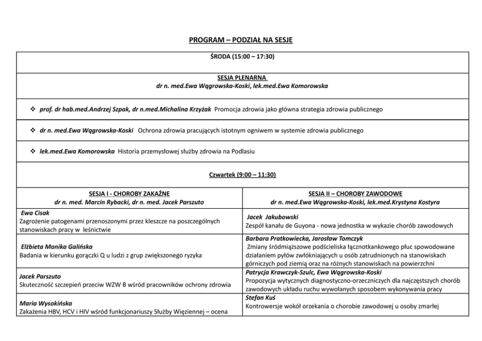 PROGRAM – PODZIAŁ NA SESJE