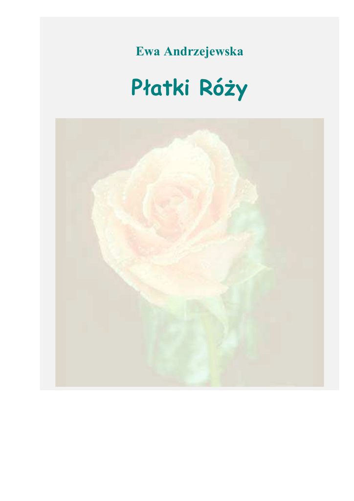 Ewa Andrzejewska Płatki Róży TWOJE SŁOWA ............................................................................................. 4 GDYBYM ...................................................................................................... 4 MIŁOŚĆ ...................................................................................................... 4 ODWZAJEMNIENIEM....................................................................................... 4 NASZ PIERWSZY SPACER .................................................................................. 4 ZIELONA ? ................................................................................................... 5 GŁOS.......................................................................................................... 5 INTERPRETACJA PEWNEJ PIOSENKI TOBIE ............................................................ 6 EWA DO EWY................................................................................................ 6 TWOJE OCZY ................................................................................................ 7 MÓJ POKÓJ .................................................................................................. 7 TRUDNA MIŁOŚĆ ........................................................................................... 8 PIESZCZOTY ................................................................................................. 9 ODLEGŁOŚĆ .................................................................................................. 9 ZABRAŁEŚ SERCE MOJE .................................................................................. 10 ZNALAZŁAM NAS .......................................................................................... 10 LAWENDA ................................................................................................... 12 ŻYCZENIA ................................................................................................... 13 GWIEŹDZISTE NIEBO..................................................................................... 14 RÓŻA ........................................................................................................ 15 TWARZE ..................................................................................................... 17 SŁOWO ...................................................................................................... 17 RAMIONA ................................................................................................... 20 SEN .......................................................................................................... 21 ZIEMSKI ANIOŁ ........................................................................................... 21 ANIOŁ MIŁOŚCI ........................................................................................... 22 ŚCIANA...................................................................................................... 22 MOJE PIERSI ............................................................................................... 23 ZGADNIJ JAK BARDZO CIĘ KOCHAM ................................................................... 24 Ewa Andrzejewska (z domu JASKULSKA) Poznań 2004 INTRUZ WIGILIJNY....................................................................................... 26 WYZNANIE ................................................................................................. 28 DWA ŚWIATY .............................................................................................. 29 ŁZY........................................................................................................... 29 ŚNIEŻNY CZAS............................................................................................. 30 SELENE ...................................................................................................... 31 PARK NA « MYSIEJ GÓRZE » ............................................................................ 31 POCAŁUNEK ................................................................................................. 32 PARC MONTSOURIS ....................................................................................... 33 MONTSOURIS PARK ....................................................................................... 34 WIOSNA .................................................................................................... 34 DUSZA ....................................................................................................... 35 WIECZNOŚĆ ................................................................................................ 35 SERCE........................................................................................................ 36 Wydawnictwo Sławek & Ewa Andrzejewski Poznań 2004 Copyright © 2004, Ewa Andrzejewska (z domu JASKULSKA) All rights reserved Ewa Andrzejewska (z domu JASKULSKA) Poznań 2004 Lawenda Lawendowy obraz, malują oczy me, Zamknij je, poczuj. Widok jak ze snu. Oczy, a w nich – odcień fioletu. Kołyszące się na wietrze pola lawendowe. Czuję woń, która rozbudza zmysły me. Pragnę zatrzymać ją w sobie. Zapach lawendy, A w nim JA i TY, Przytuleni, zamyśleni ….. Czuję bliskość Twą, Rozpływam się, w obłoku woni tej. Moje zmysły unoszą się, Przykryte woalem fioletu. Kładziesz głowę na ramieniu mym, W oddali słychać szum lawendowych pól. I tak wtuleni w siebie, Siebie nieświdomi, podążamy odurzeni, Trwając w lawendowej toni. Cisza ta kołysze nas, w takt muzyki naszych serc. Nie zapomni żaden z nas ...... Liliowego dotyku naszych ciał, I liliowych łez, Nieziemskiej rozkoszy, co kołysze nas .... Ta chwila trwa ….. Lawendowej rozkoszy woń, łączy nas. Delikatny dotyk twój, mego ciała woń, Ten zapach odurza nas ….. Obudźmy się z liliowego snu, Powróćmy .... Widzę obrazek, Nas w nim ….. Lawendowe pole, spójrz, Gdz