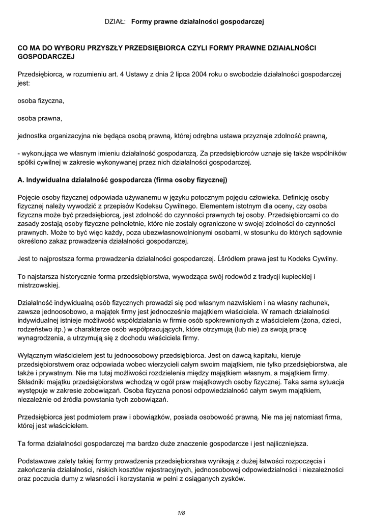 DZIAŁ: Formy prawne działalności gospodarczej CO MA DO