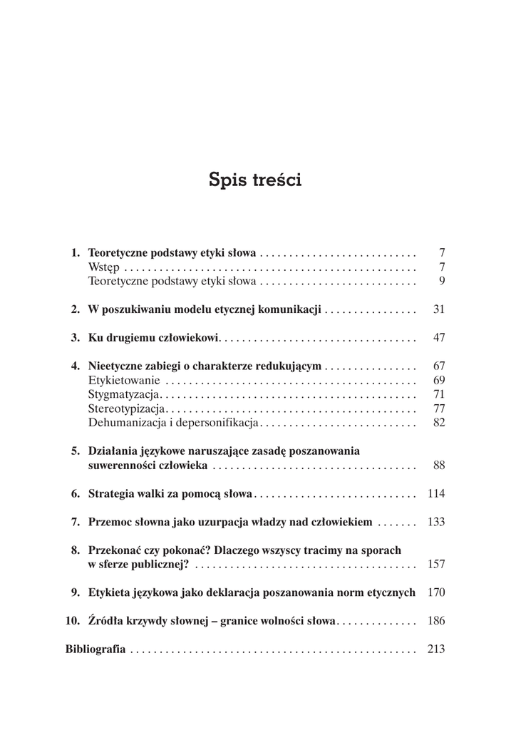 Spis treści 1. Teoretyczne podstawy etyki słowa . . . . . . . . . . . . . . . . . . . . . . . . . . . . Wstęp . . . . . . . . . . . . . . . . . . . . . . . . . . . . . . . . . . . . . . . . . . . . . . . . . . . Teoretyczne podstawy etyki słowa. . . . . . . . . . . . . . . . . . . . . . . . . . . . 7 7 9 2. W poszukiwaniu modelu etycznej komunikacji. . . . . . . . . . . . . . . . . 31 3. Ku drugiemu człowiekowi. . . . . . . . . . . . . . . . . . . . . . . . . . . . . . . . . . . 47 4. Nieetyczne zabiegi o charakterze redukującym. . . . . . . . . . . . . . . . . Etykietowanie . . . . . . . . . . . . . . . . . . . . . . . . . . . . . . . . . . . . . . . . . . . . Stygmatyzacja. . . . . . . . . . . . . . . . . . . . . . . . . . . . . . . . . . . . . . . . . . . . . Stereotypizacja. . . . . . . . . . . . . . . . . . . . . . . . . . . . . . . . . . . . . . . . . . . . Dehumanizacja i depersonifikacja. . . . . . . . . . . . . . . . . . . . . . . . . . . . 67 69 71 77 82 5.Działania językowe naruszające zasadę poszanowania suwerenności człowieka . . . . . . . . . . . . . . . . . . . . . . . . . . . . . . . . . . . . 88 6. Strategia walki za pomocą słowa. . . . . . . . . . . . . . . . . . . . . . . . . . . . . 114 7. Przemoc słowna jako uzurpacja władzy nad człowiekiem . . . . . . . . 133 8.Przekonać czy pokonać? Dlaczego wszyscy tracimy na sporach w sferze publicznej? . . . . . . . . . . . . . . . . . . . . . . . . . . . . . . . . . . . . . . . 157 9. Etykieta językowa jako deklaracja poszanowania norm etycznych. 170 10. Źródła krzywdy słownej – granice wolności słowa. . . . . . . . . . . . . . . 186 Bibliografia . . . . . . . . . . . . . . . . . . . . . . . . . . . . . . . . . . . . . . . . . . . . . . . . . . 213 1 Teoretyczne podstawy etyki słowa Wstęp O etyce słowa zaczęto mówić w Polsce na początku lat osiemdziesiątych XX wieku za sprawą Jadwigi Puzyniny. Językoznawcy dostrzegali konieczność podjęcia problematyki etycznej, ale ich wątpliwości budziła możliwość badań etycznego aspektu funkcjonowania systemu językowego za pomocą metod typowo językoznawczych, czyli uznania etyki słowa za gałąź językoznawstwa. Objęcie badaniami wielu złożonych kwestii pragmatycznych oraz uczynienie przedmiotem analiz lingwistycznych komunikacji, a nie samego języka, wydawało się wtedy nieuprawnionym rozszerzaniem zakresu lingwistyki. Nie znaczy to, że problemów etycznych w tym czasie nie obserwowano. Zagadnieniem manipulacji za pomocą języka zajmowali się przedstawiciele kilku różnych dyscyplin naukowych – filozofowie, językoznawcy, socjolodzy i historycy. Badania takie zdawały się jednak czymś bardzo swoistym, odrębnym i jednocześnie zdecydowanie wykraczającym poza ramy zarówno tradycyjnie rozumianego językoznawstwa, jak i etyki. Uświadomienie sobie niszczycielskiej siły manipulacji politycznej, jej ogromnego zasięgu w polskim życiu społecznym sprawiało, że inne zjawiska, które widziano również w aspekcie etycznym, znalazły się na dalszym planie, a najważniejszym problemem z tego zakresu stała się relacja języka i prawdy, milczenia i kłamstwa. Dwa ważne wydarzenia – wystąpienie Michała Głowińskiego na temat nowomowy w warszawskim Pen Clubie (wiosną 1980 roku) oraz sesję poświęconą nowomowie (w styczniu 1981 roku w Krakowie) – można dziś uznać za początek badań mieszczących się w granicach etyki słowa. Wtedy jednak, choć dyskutowano właśnie nad etycznymi właściwościami i skutkami zjawisk językowych, nie mówiono jeszcze o etyce języka, lecz o jego nietycznym użyciu. 8 1. Teoretyczne podstawy etyki słowa Niewiele później Jadwiga Puzynina przedstawiła w Instytucie Języka Polskiego UW propozycję nowych badań nad językiem, które określiła mianem etyki słowa. Choć waga językowych problemów etycznych wydawała się oczywista, dyskutanci wyrażali jednak wątpliwości co do tego, czy językoznawstwo, a zwłaszcza językoznawstwo strukturalistyczne, dysponuje metodami badawczymi wystarczającymi do analizy zjawisk językowych pod względem etycznym. Następny etap w rozwoju tego działu wiedzy stanowi wystąpienie Anny Pajdzińskiej i Jadwigi Puzyniny na Forum Kultury Słowa we Wrocławiu w roku 1995. Obie badaczki przedstawiły wtedy zasady etyki słowa oparte na takich wartościach, jak życzliwość, potrzeba kontaktu z drugim człowiekiem, szczerość, prawda, uczciwość, szacunek dla inności, gotowość działań dla dobra wspólnego. Kilka lat po przedstawieniu samej idei etyki słowa powstało wiele publikacji poświęconych zagadnieniom z tego zakresu, w tym kilka szczególnie ważnych: Słowo – wartość – kultura Jadwigi Puzyniny (Lublin 1997), O kłamstwie i kłamaniu. Studium semantyczno-pragmatyczne Jolanty Antas (Kraków 2000), Świt wolnego słowa. Język propagandy politycznej 1981–1995 Igora Borkowskiego (Wrocław 2003), Słowa na wolności. Język polityki po 1989 roku. Wypowiedzi, dowcip polityczny, słownik inwektyw Ireny Kamińskiej-Szmaj (Wrocław 2001), Formy i funkcje agresji werbalnej. Próba typologii Marii Peisert (Wrocław2004). O tym, że etyczne problemy użycia słowa, zwłaszcza w dyskursie publicznym, są dla językoznawstwa ważne, świadczą takie fakty, jak konferencja „Retoryka i etyka” (w Poznaniu w 2007 roku) oraz powołanie Stowarzyszenia Etyki Słowa z siedzibą w Bydgoszczy (w 2008 roku). W 2012 roku w Instytucie Polonistyki Stosowanej odbyła się kolejna konferencja dotycząca etyki słowa. Podjęte na niej problemy uznano za ważne dla językoznawstwa. Od tego czasu młodzi językoznawcy, doktoranci i studenci spotykają się na regularnych kolokwiach etycznych. Również ta książka, pomyślana jako podręcznik akademicki, jest świadectwem przekonania, że wiedza o tym, jak można używać języka, respektując standardy etyczne, powinna być przekazywana studentom, szczególnie studiów humanistycznych, a etyka słowa